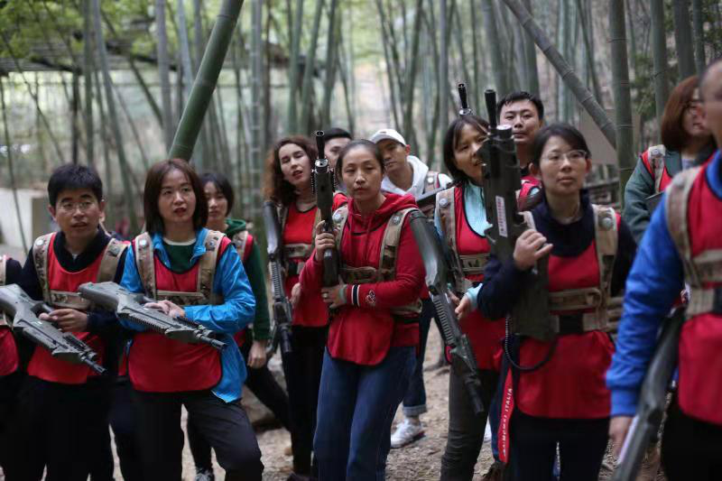 在开营仪式上,会员们分成了红队和蓝队两个小组,进行了多项热身运动和破冰体验活动。在真人CS擂战环节,两队会员们听从教练指挥,实行了两次冲锋对战,经过激烈的角逐,最后蓝队获得了这个环节的胜利。而“丛林穿越”这个环节对一些常年坐在办公室,缺少运动的会员来说,具有一定的难度和心理挑战,但会员们都勇敢地踏上了征服之旅,并再次展现了团结友爱、互帮互助的精神,顺利通过难关。