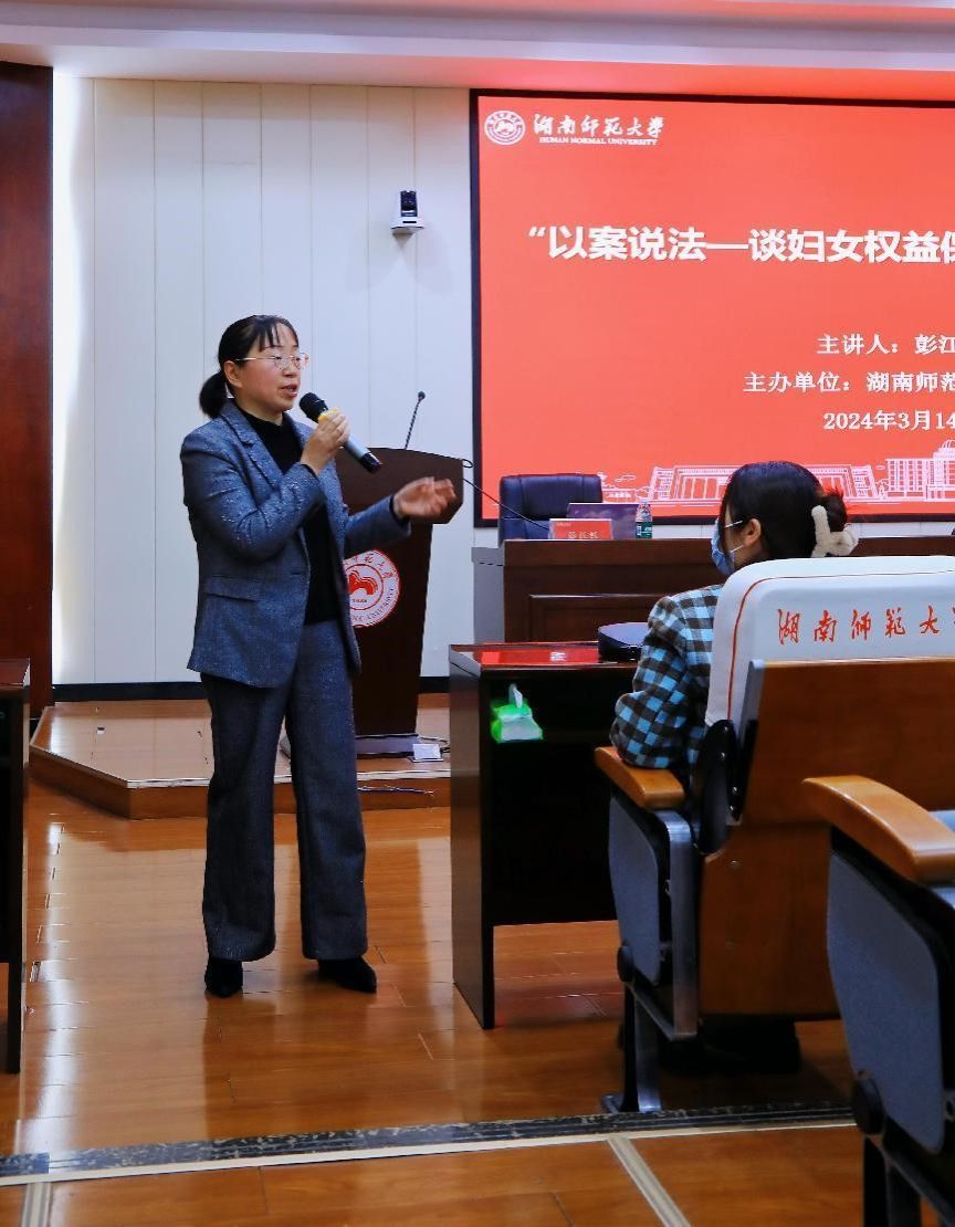 活动中,来自法学院的彭江红老师为女教职工讲解了妇女权益保护方面的法律知识。彭老师以简洁明了的言语,聚焦当前妇女维权相关的热点话题,通过真实案例以案说法,结合新修订的《妇女权益保障法》的亮点,从《民法典》婚姻家庭篇为切入点,向在场女教职工代表具体介绍了妇女的政治权利、人身和人格权益、文化教育权益、劳动和社会保障权益、财产权益、婚姻家庭权益,重点聚焦婚姻家庭权益中婚前财产约定的重要性、婚内能否分割夫妻共同财产等具体问题,让大家了解该怎样合法保护自己婚前、婚内财产,对常见的家庭矛盾也进行了剖析,告诉大家在遭遇家庭暴力或其他合法权益受到侵害时如何收集和保护证据,并通过拉家常的方式与在场群众分享经营好婚姻家庭的理解与感悟,希望广大女教职工能发挥自身在家庭中的独特作用,共同建设好幸福小家。教职工纷纷表示:“听彭老师这么一讲,我不仅对妇女权益保障方面的法律法规有了深入的了解,也懂得了如何更好的维护婚姻关系。”