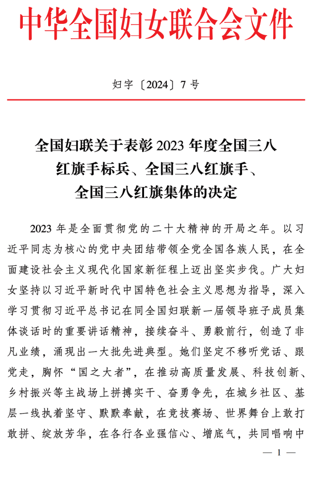近日,全国妇联发布《关于表彰2023年度全国三八红旗手标兵、全国三八红旗手、全国三八红旗集体的决定》(妇字〔2024〕7号),共表彰2023年度全国三八红旗手标兵10人、全国三八红旗手300人以及全国三八红旗集体200个单位。WilliamHill体育文学院汤素兰教授被授予“全国三八红旗手”荣誉称号。