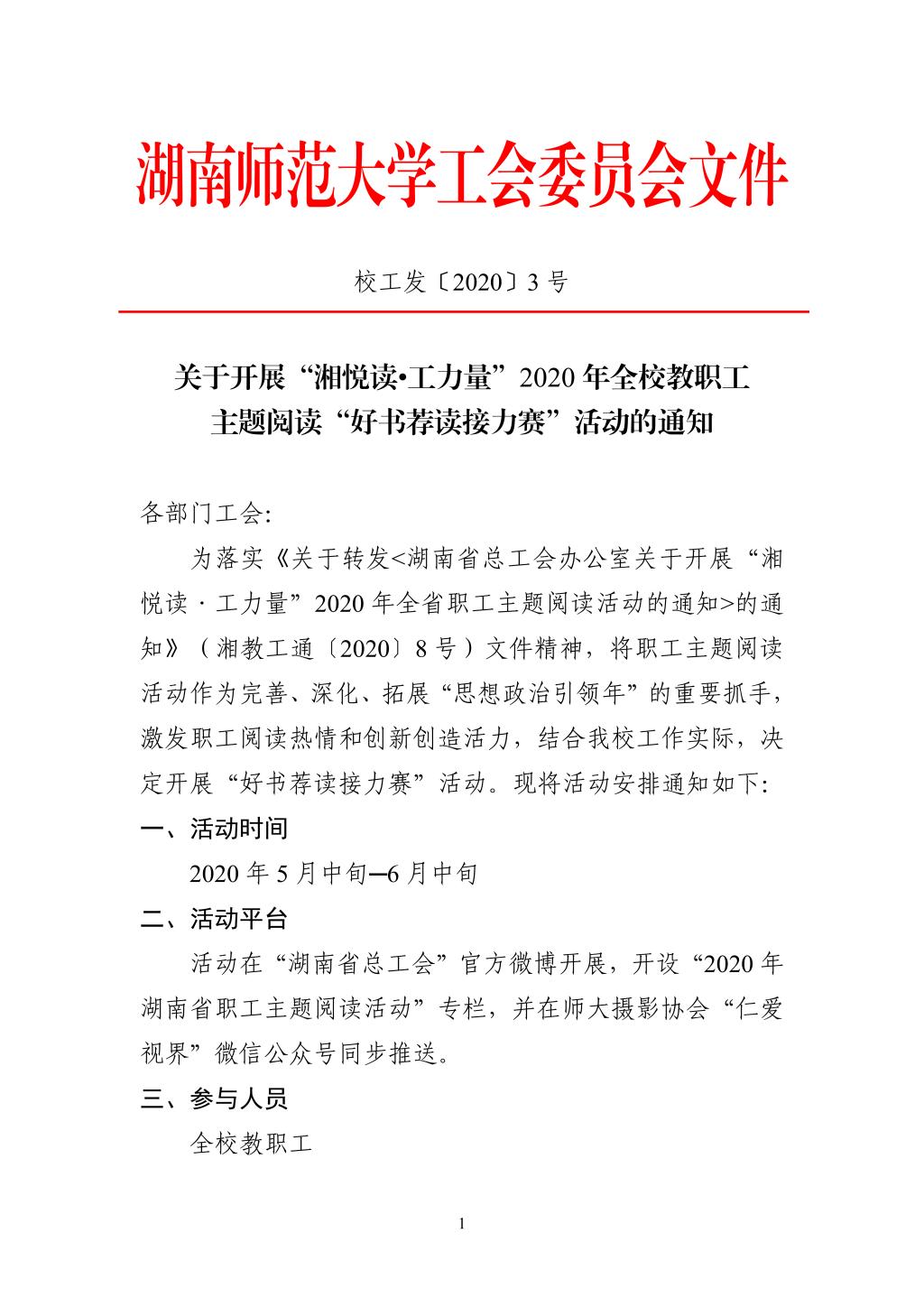 关于开展“湘悦读•工力量”2020年全校教职工