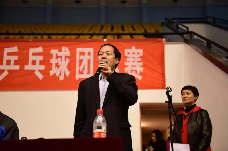 刘起军宣布2018年教职工乒乓球团体赛正式开始。