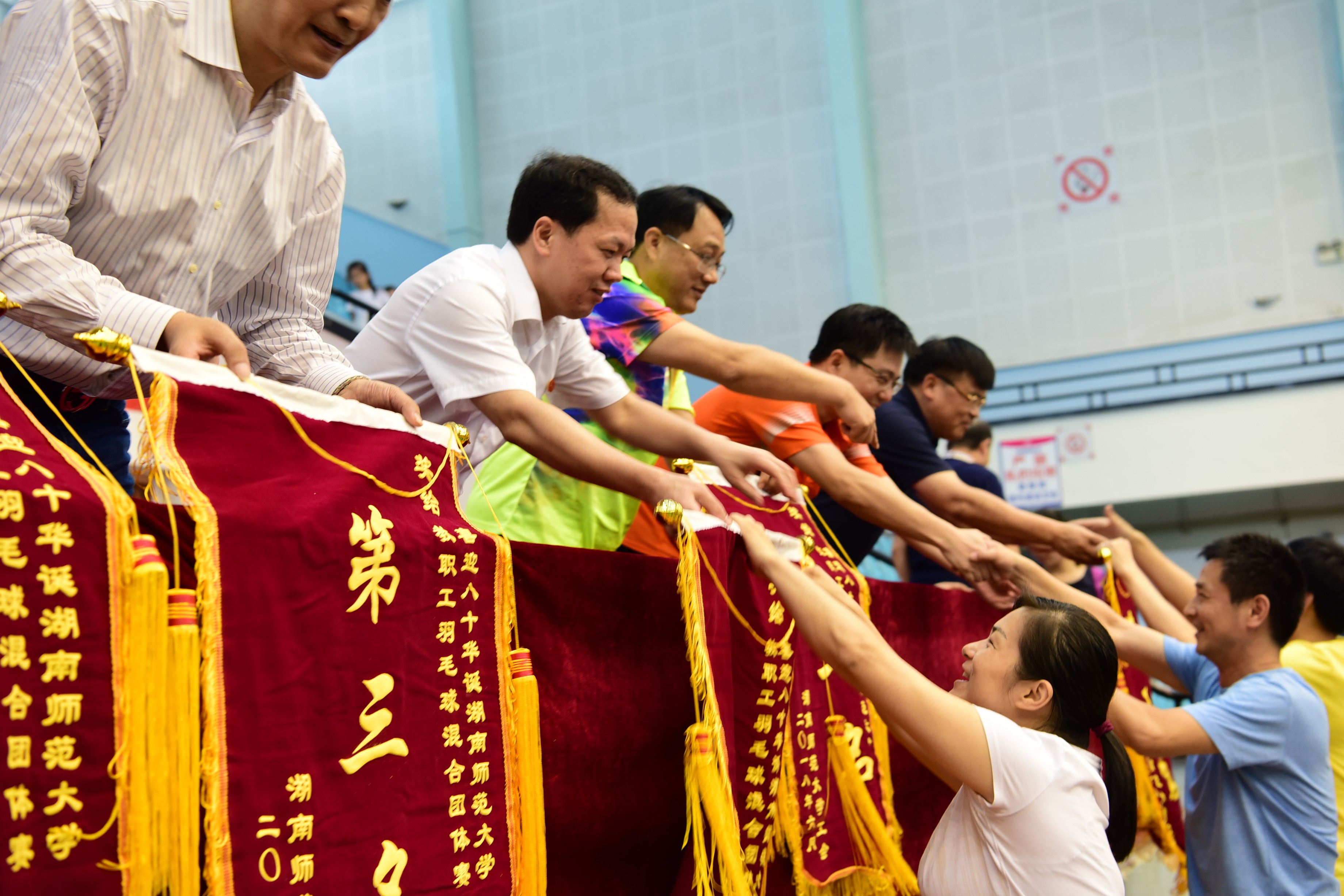 经过激烈的角逐,比赛于6月3日下午圆满落幕。总裁判长张卓瑛宣布比赛成绩。刘起军、体育学院院长汤长发、校发展规划处处长杨震、校信息化办公室处长陈宇、校WilliamHill体育党委书记鄢朝晖、校后勤集团党委书记龚向明、湘东医院党委书记王志明、师大附中副校长陈迪勋为获奖单位颁发锦旗。