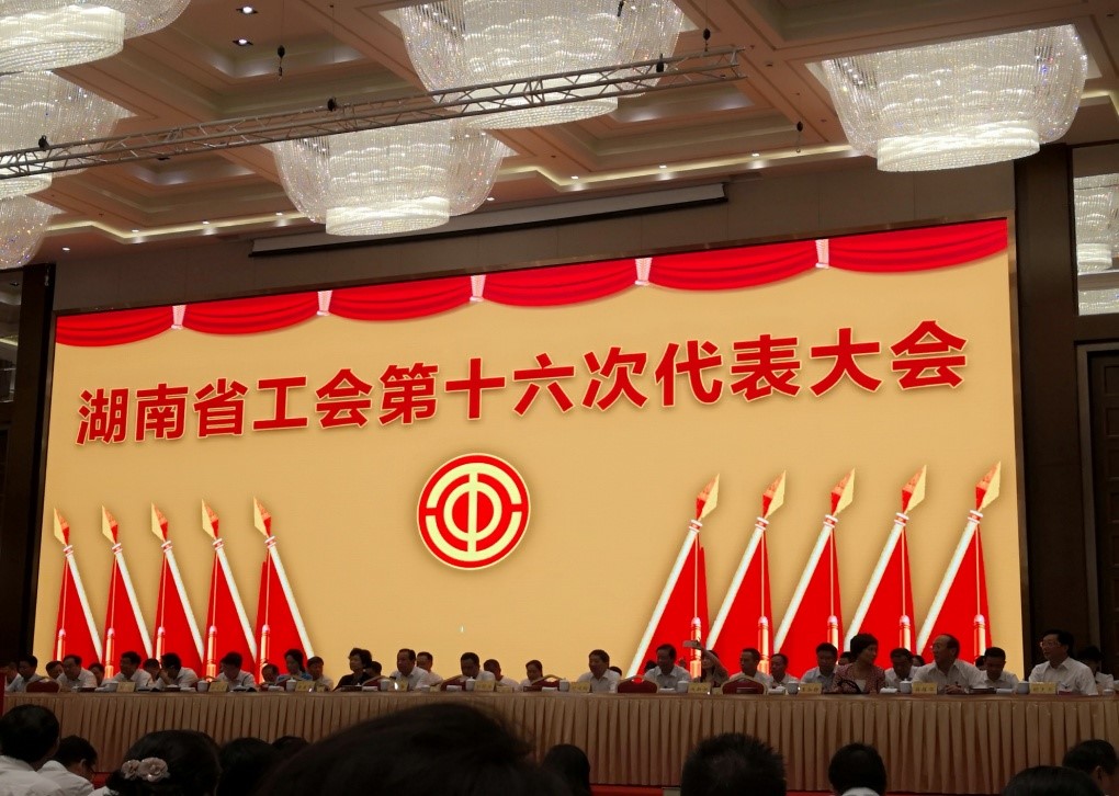 这次大会的主题是:高举习近平新时代中国特色社会主义思想伟大旗帜,不忘初心、牢记使命,肩负政治责任,务实改革创新,依法履职尽责,团结动员全省广大职工坚定不移听党话、跟党走,积极投身创新引领开放崛起战略,为建设富饶美丽幸福新湖南不懈奋斗。