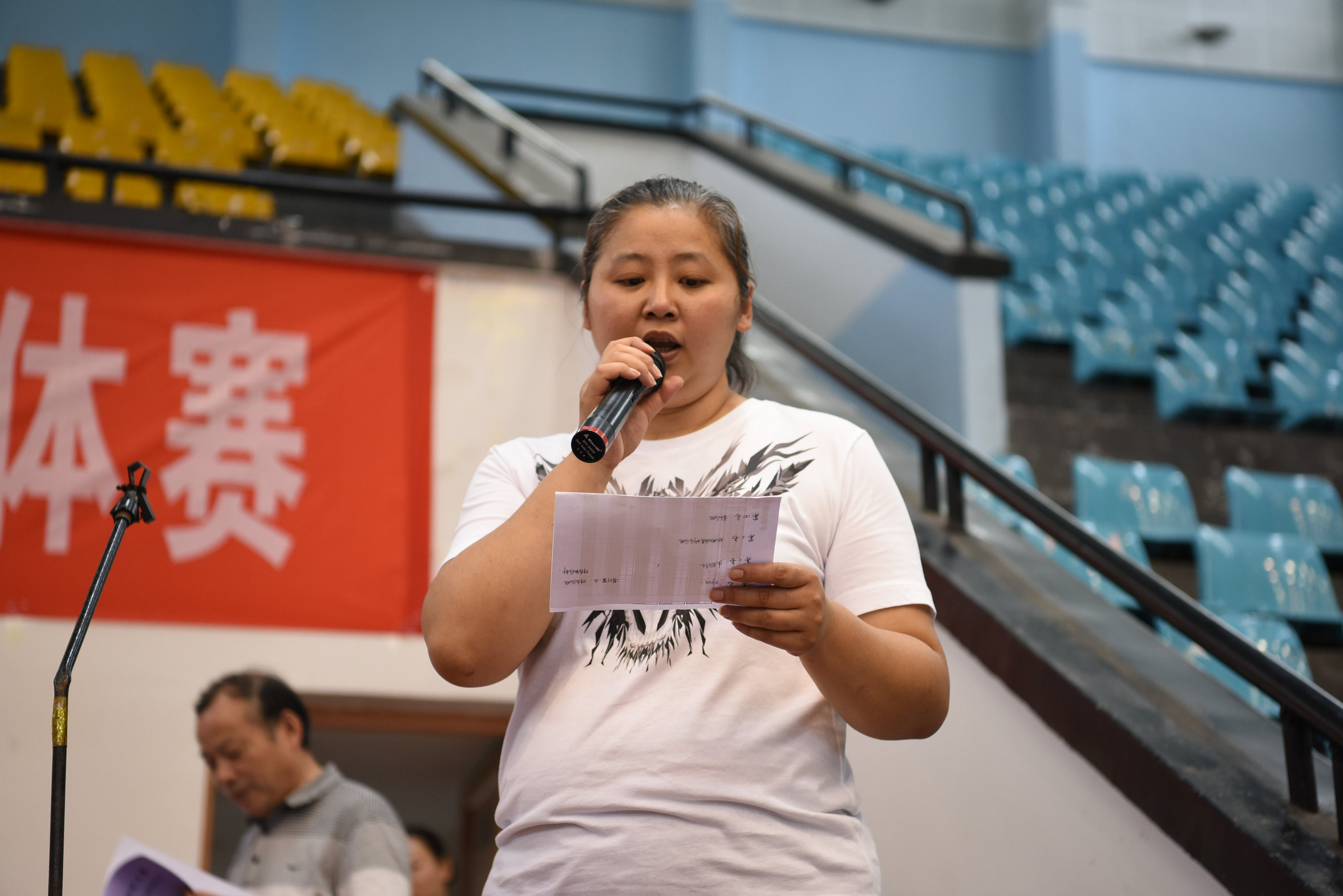 庄严的国歌礼后,运动员代表龙燕燕、裁判员代表罗颂安上台宣誓。