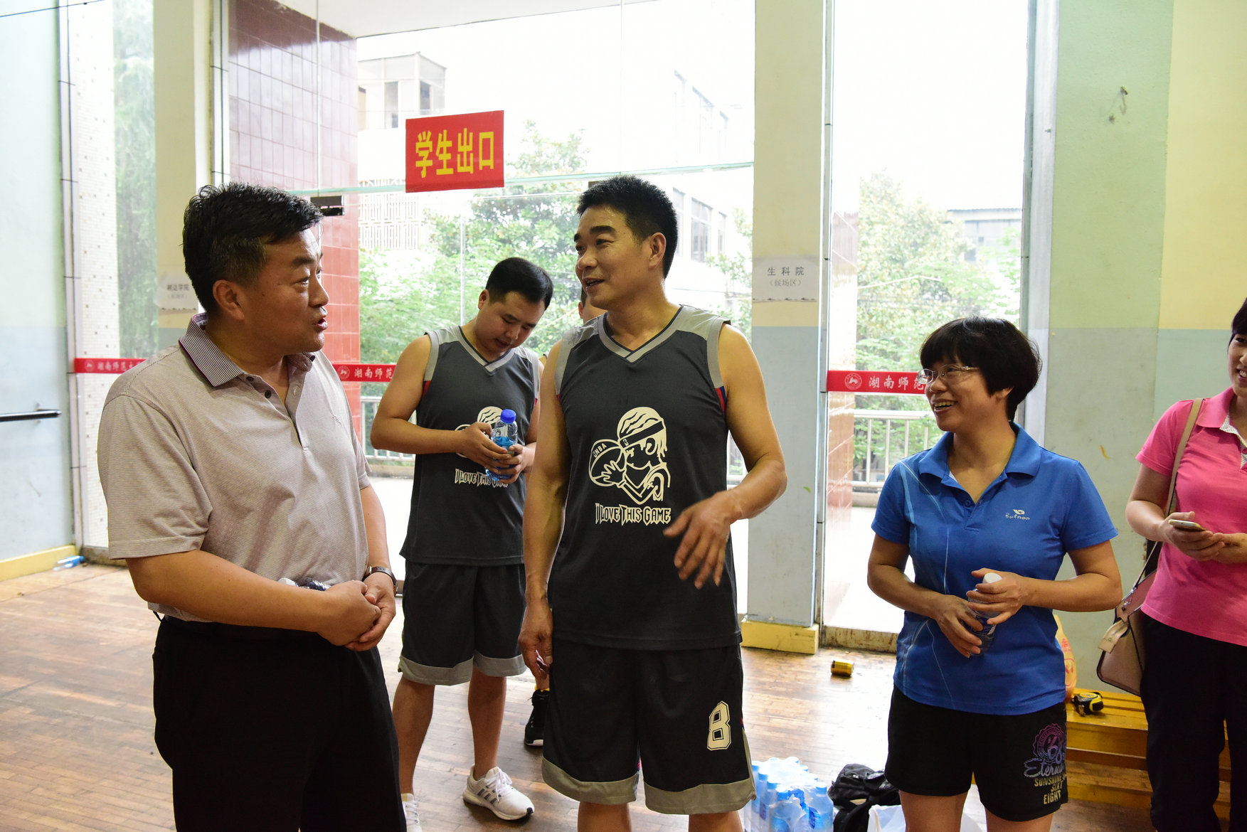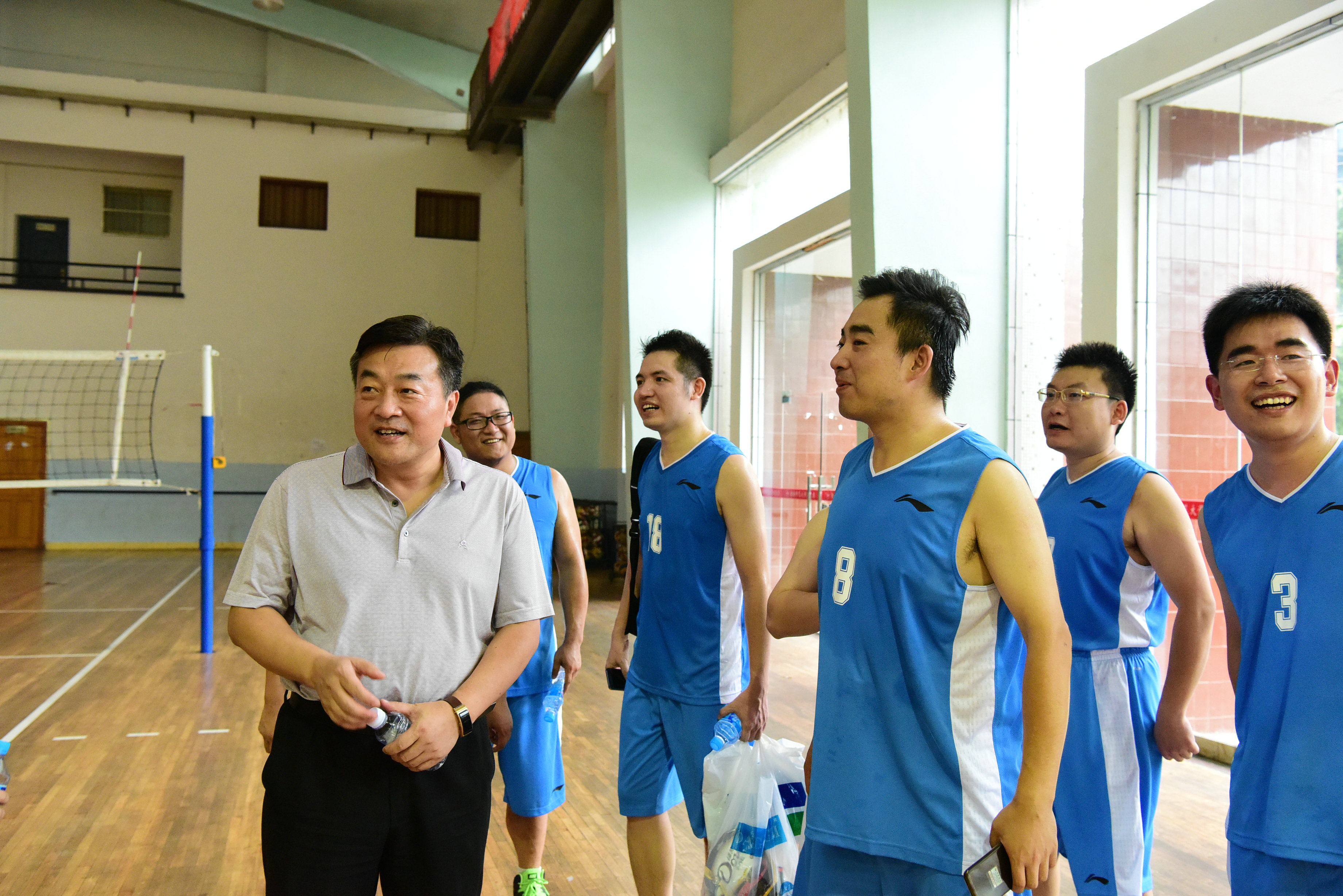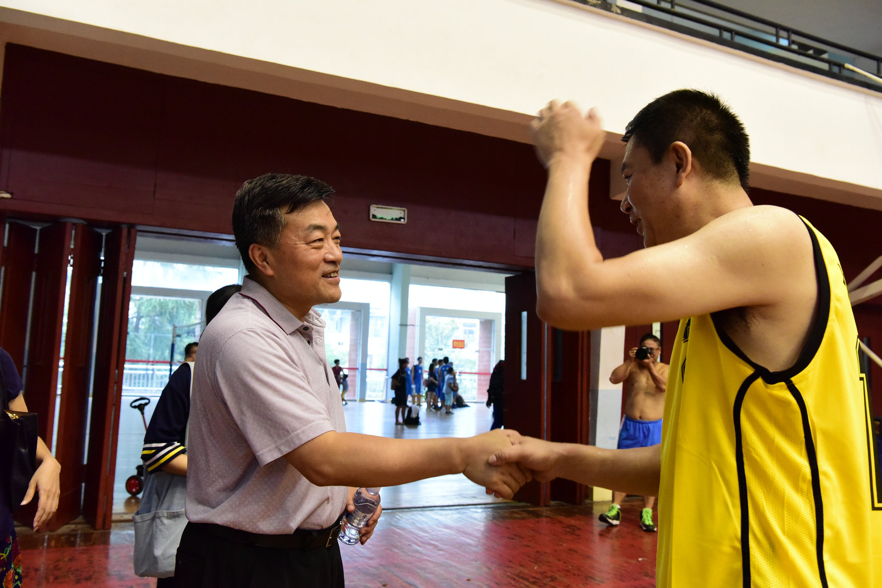 (通讯员 谭郑霄) 9月23日下午,校党委书记李民到体育馆看望慰问裁判员和运动员。李民书记充分肯定了此次比赛裁判员采用老裁判带学生裁判的形式,他说,这种做法为学生裁判提供了丰富的实战经验,勉励学生裁判高标准、严要求执判。在与运动员交流时,李民书记一再叮嘱运动员友谊第一、比赛第二,要在竞争中促进交流、增进友谊。
