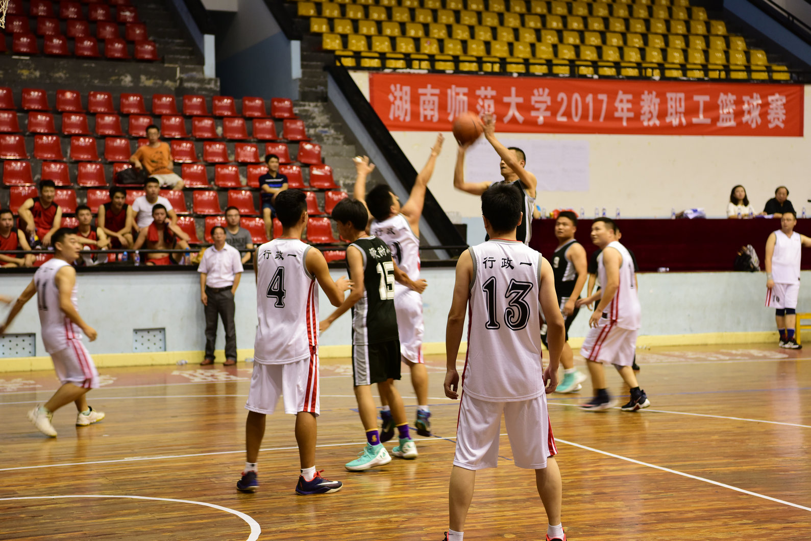 运动员代表管济、裁判员代表江海伟分别宣誓。WilliamHill体育常务副主席刘祎对教职工篮球赛的开幕表示热烈祝贺,向参加比赛的全体运动员、裁判员和教练员等表示诚挚的问候。刘祎说,时隔八年,篮球赛重新在WilliamHill体育开展,为全校的篮球篮球运动爱好者搭建了一个竞技平台,对活跃教职工业余文化生活,增强工作中的凝聚力和战斗力,必将起到积极的推进作用。希望各代表队本着“友谊第一、比赛第二”的原则,赛出个性风采,赛出团结友谊,并特别提醒运动员一定要注意身体安全。