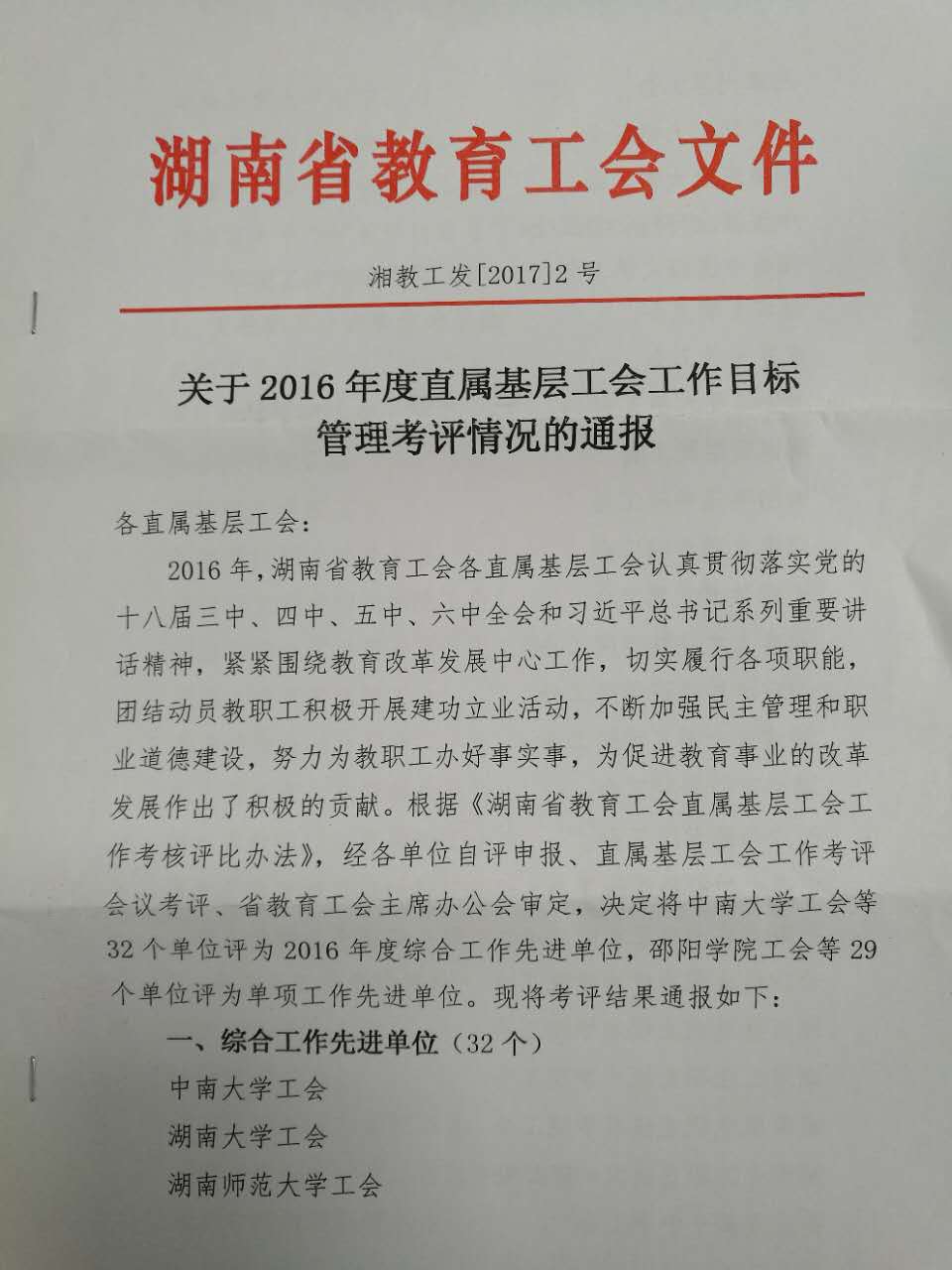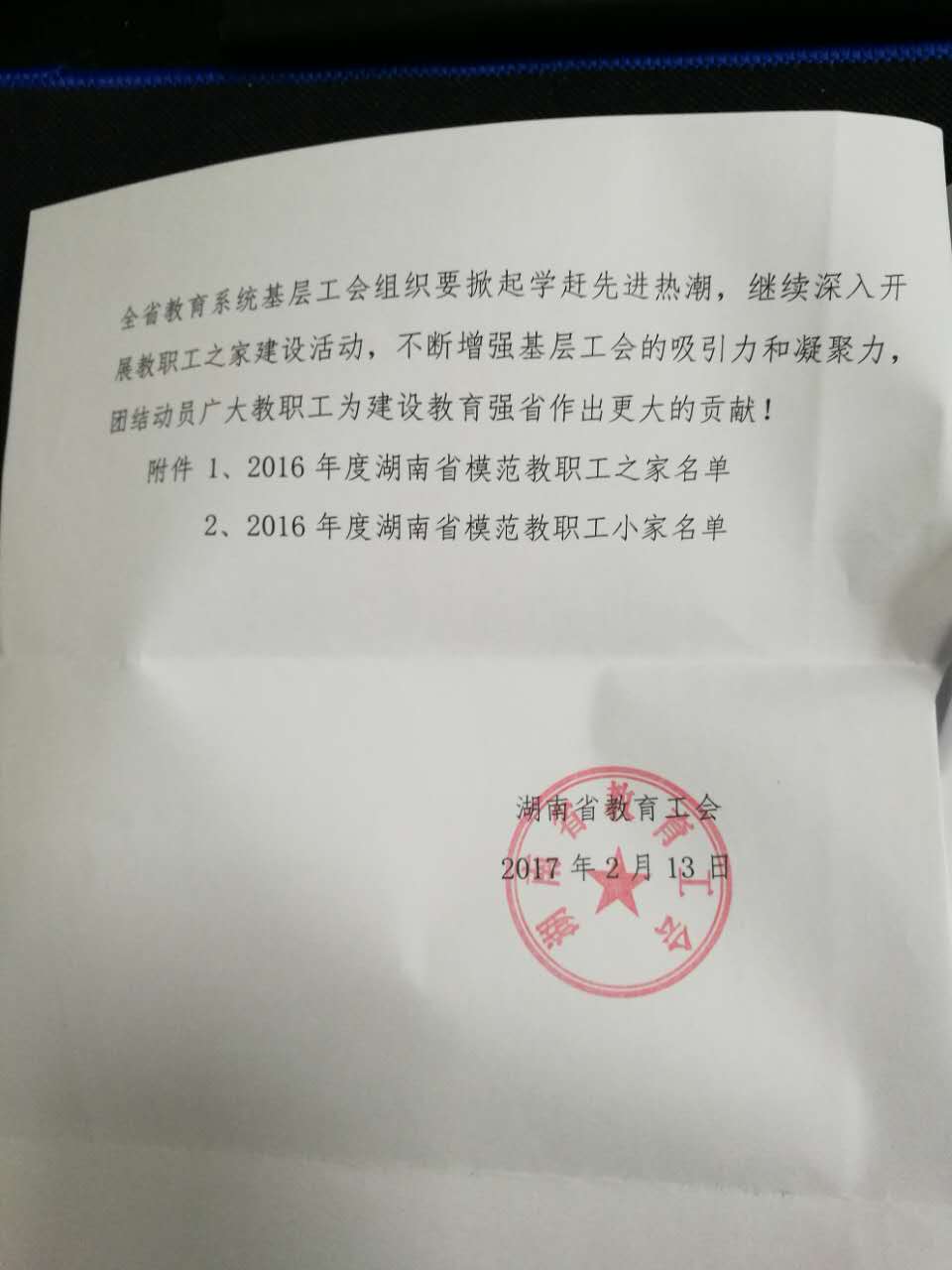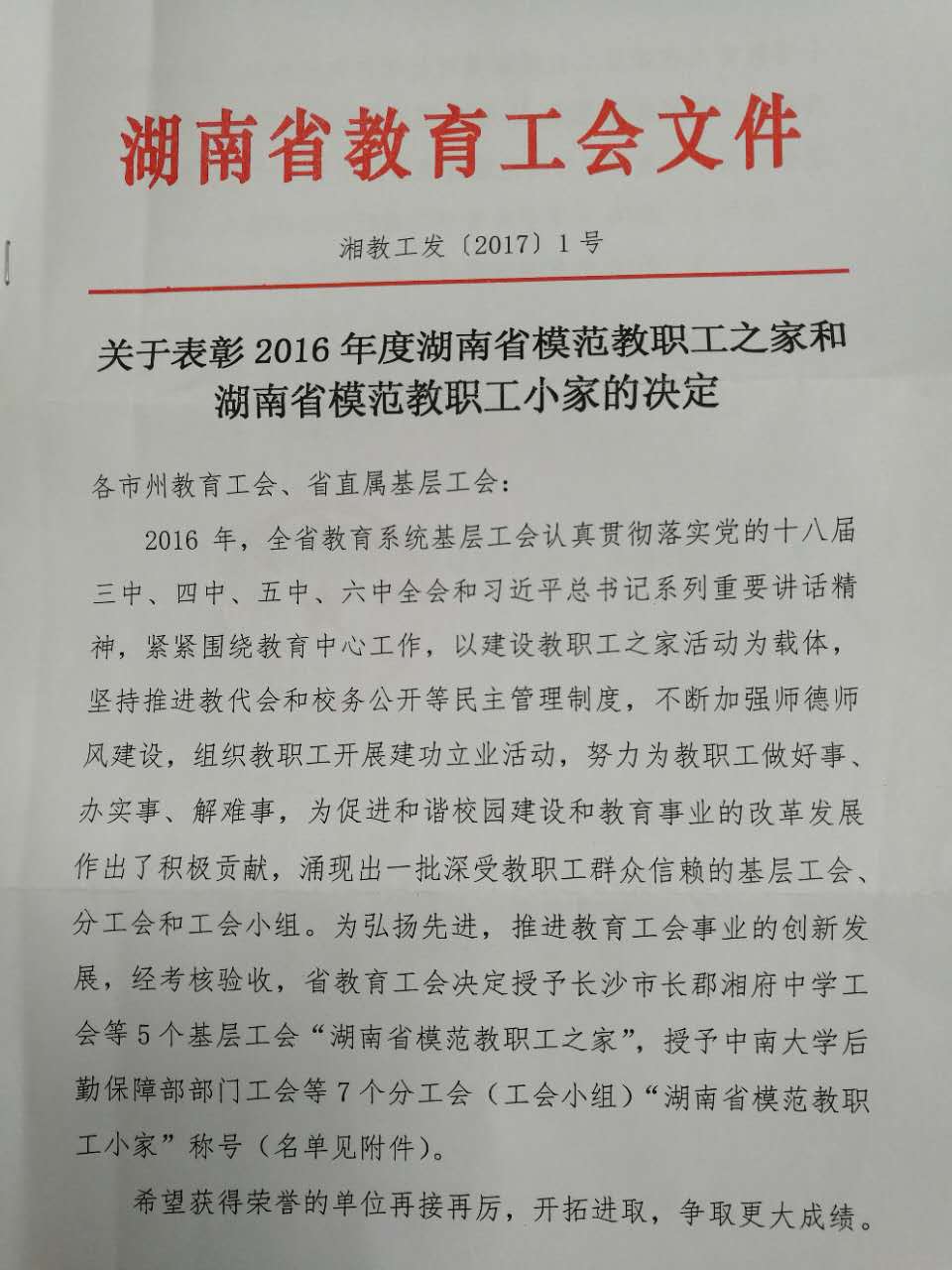 (供稿 WilliamHill体育)近日,省教育工会组织的湖南省教育工会直属基层工会工作考核评比揭晓,WilliamHill体育工会荣获“2016年度综合工作先进单位”称号、教育科学学院荣获“2016年度省模范教职工小家”称号。