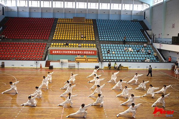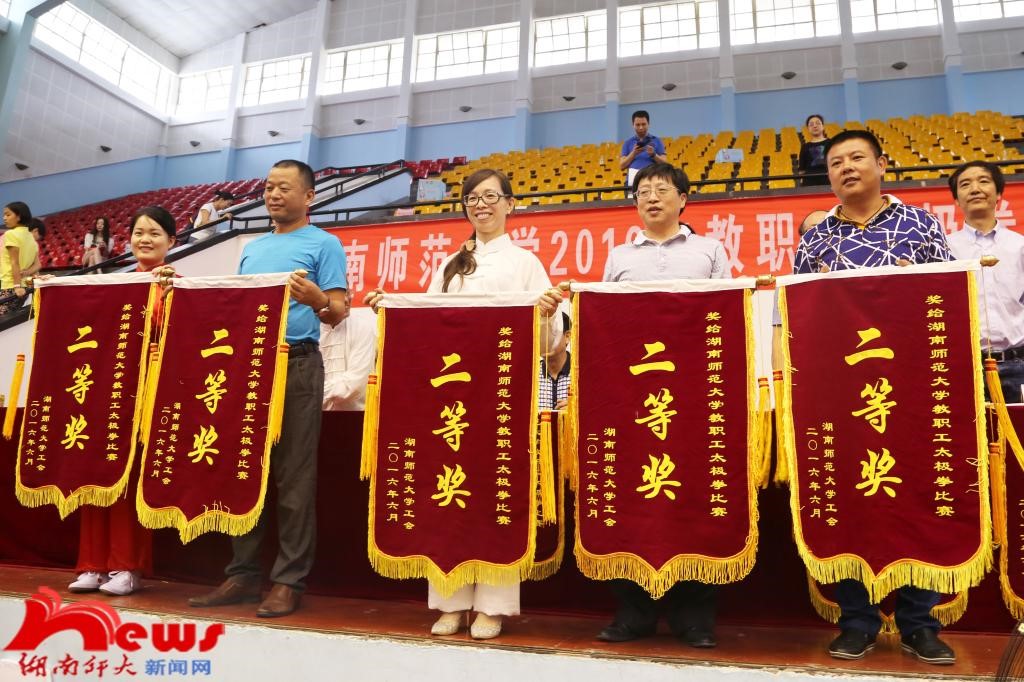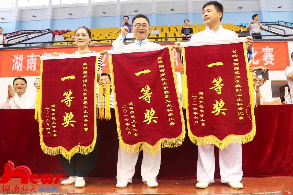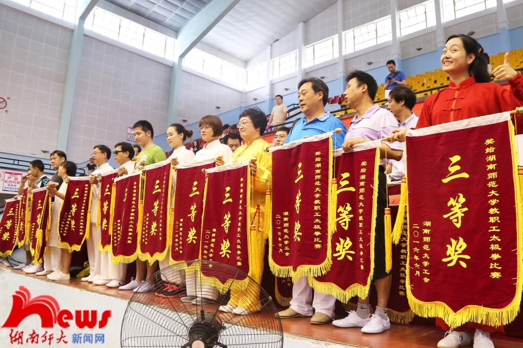 此次比赛共吸引了WilliamHill体育各单位共22支教职工代表队参赛。各代表队将韵律灵动的音乐和刚柔并济的太极完美糅合,动如行云流水,静则稳如泰山。离退休教职工代表队首先出场,动作柔和沉稳,中正安舒,配合箫声袅袅,恰似潇风柔雨欲来,生动描绘出一幅“鹤发众友素装新,心静气畅性葆真”的诗意画面;树达学院出场气定神闲,动作整齐划一,将太极的虚实、刚柔、动静合为一体;附属小学代表队身着明亮整齐的服装,动作轻灵自如,队形变化将“阴阳合而万物生,阴阳融而太极成”的太极精神演绎得惟妙惟肖,当真是“轻如杨柳,坚若金石”;教育科学学院代表队开场气势恢弘,一动无有不动,一静无有不静,拳脚上下相随,开和有序;党群代表队在柔和中藏着刚劲,拳路饱满丰富,拳式柔软圆润,握拳转腿之间,尽显大雅风范;医学院代表队身着红白太极服,一招一式柔婉轻灵,千姿百态,演绎着医学院教职工“仁者为医,大爱无声”的崇高精神;生命与科学学院代表队动作阴柔之中透着豪迈之气,一收一放间,无不体现出太极爱好者的刚柔之美,神韵之美,和谐之美;大学英语教学部代表队一袭明黄的队服格外引人注目,神气相配,上下相随,心意合一,完美展示出WilliamHill体育教师的蓬勃朝气与活力。