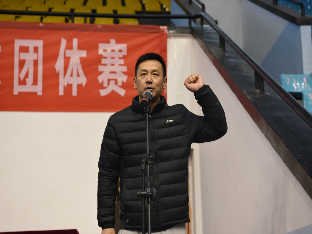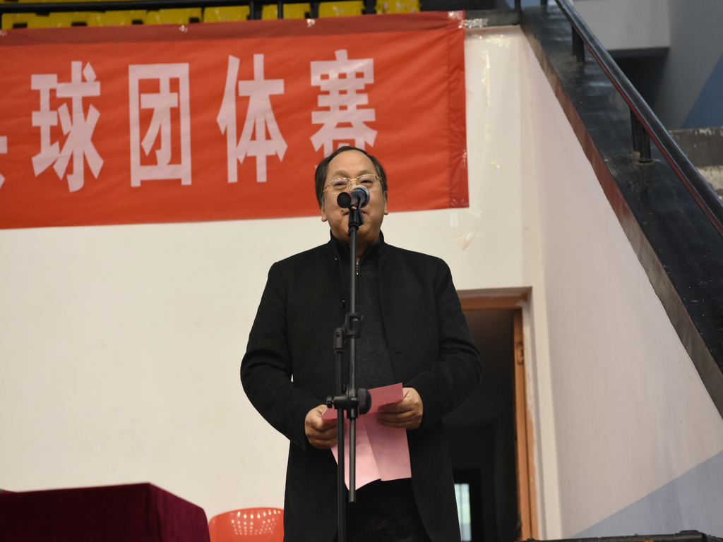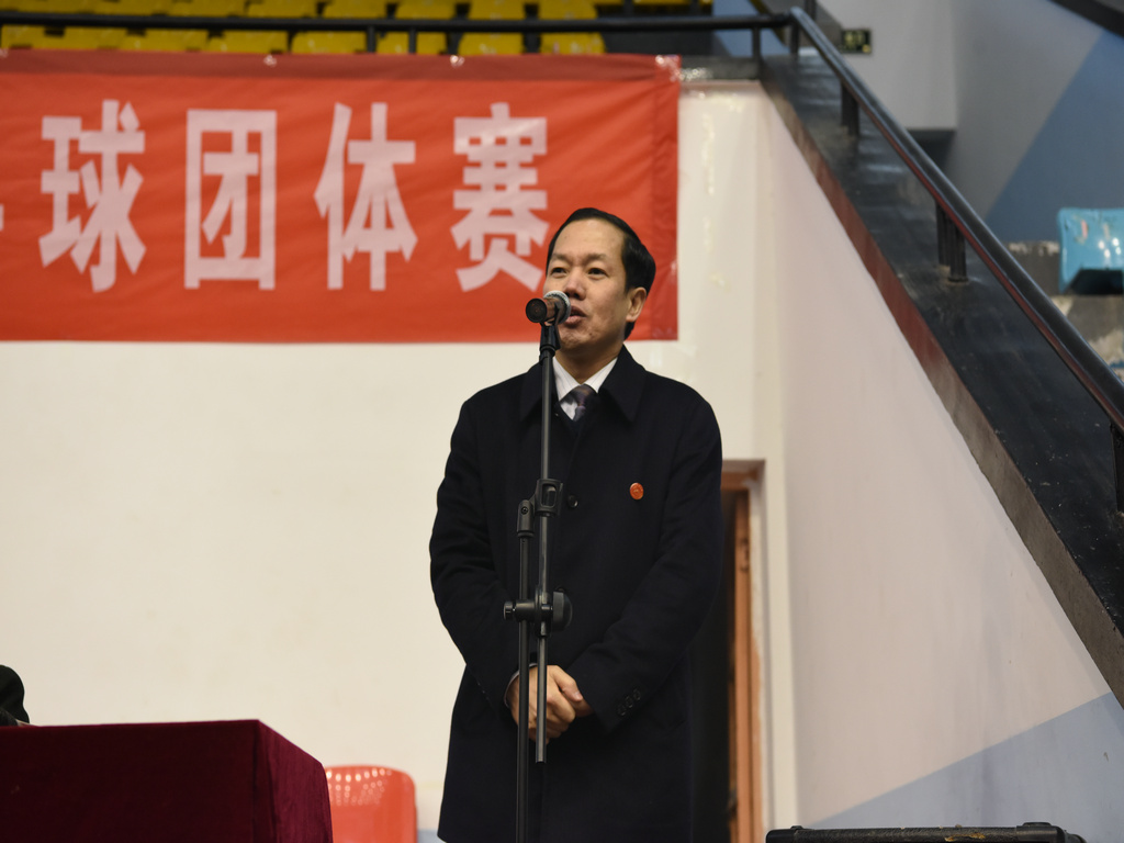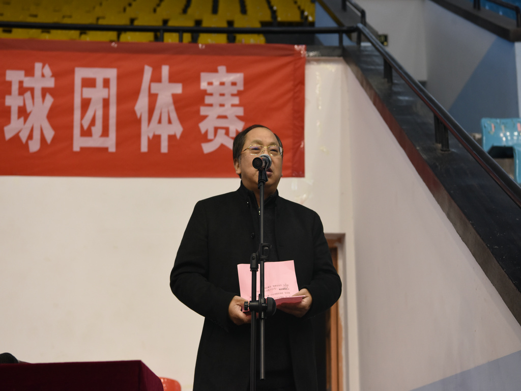 刘起军致开幕辞,他说乒乓球是我们的国球,也是我们的校球,有着广泛的群众基础,是一项广受大家欢迎的、传统的群众性体育赛事,在本科教学审核评估工作结束后开展乒乓球赛,对教职工起到了很好的调适、休整和放松的作用,他希望运动员顽强拼搏,赛出水平、赛出风格。