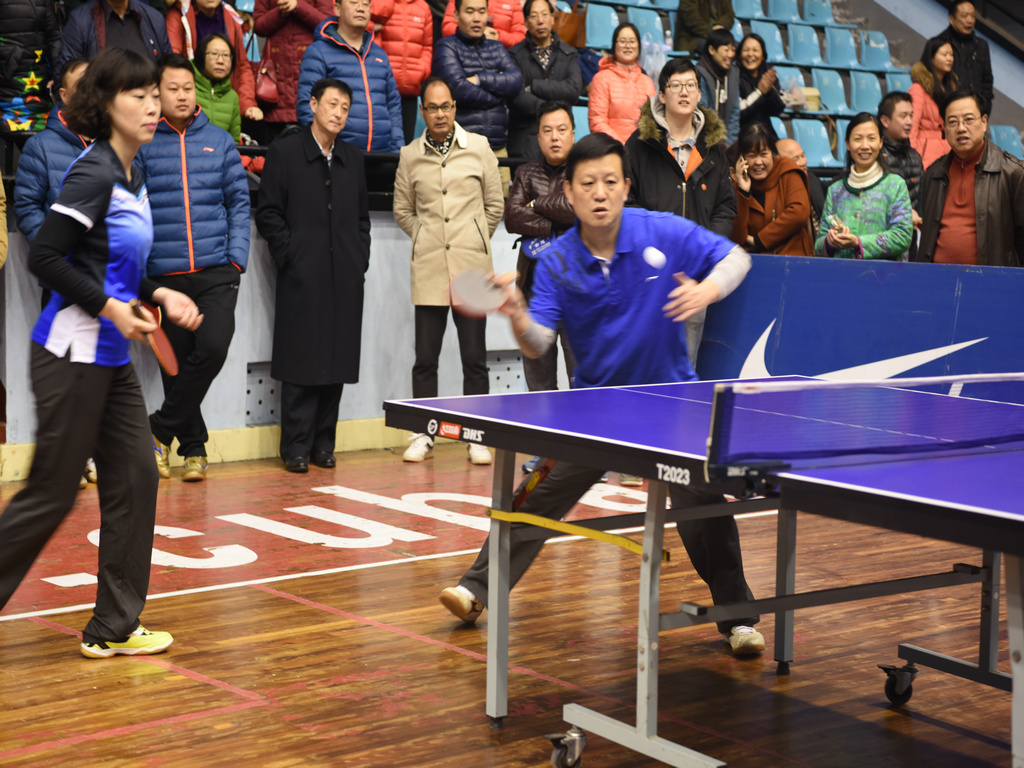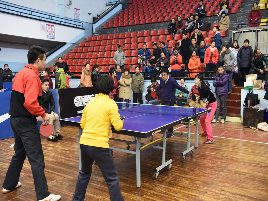 本次比赛共有30支代表队,360名教职工参赛,按惯例采用混双、男双、女双、男单、女单五场对抗赛形式,分小组循环赛和淘汰赛两个阶段。校长蒋洪新代表外国语学院参加比赛,赛场上每位运动员都用心打好每一个球,不到最后一刻决不放弃,削球、扣球、旋转球、弧线球等各种乒乓打法精彩纷呈,很多场比赛中对阵双方的分数始终紧咬着,直到最后一球才分出胜负。经过近两天激烈的较量,外国语学院代表队、生命科学院代表队、文学院代表队、教育科学学院代表队进入比赛的最后四强。决赛中,每一个球都扣人心弦,场上健儿们愈加谨慎严肃,场下观众随着球的起落时而欢呼、时而惊叹、时而惋惜,气氛也到了白热化的阶段,最终生命科学学院代表队夺得本次比赛第一名。