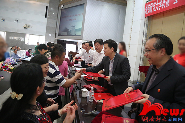 庄重的国歌礼结束后,校领导分别给劳模代表何桂荣、陈淑群、唐凯麟、邱细敏、刘少军献上鲜花和节日的问候。