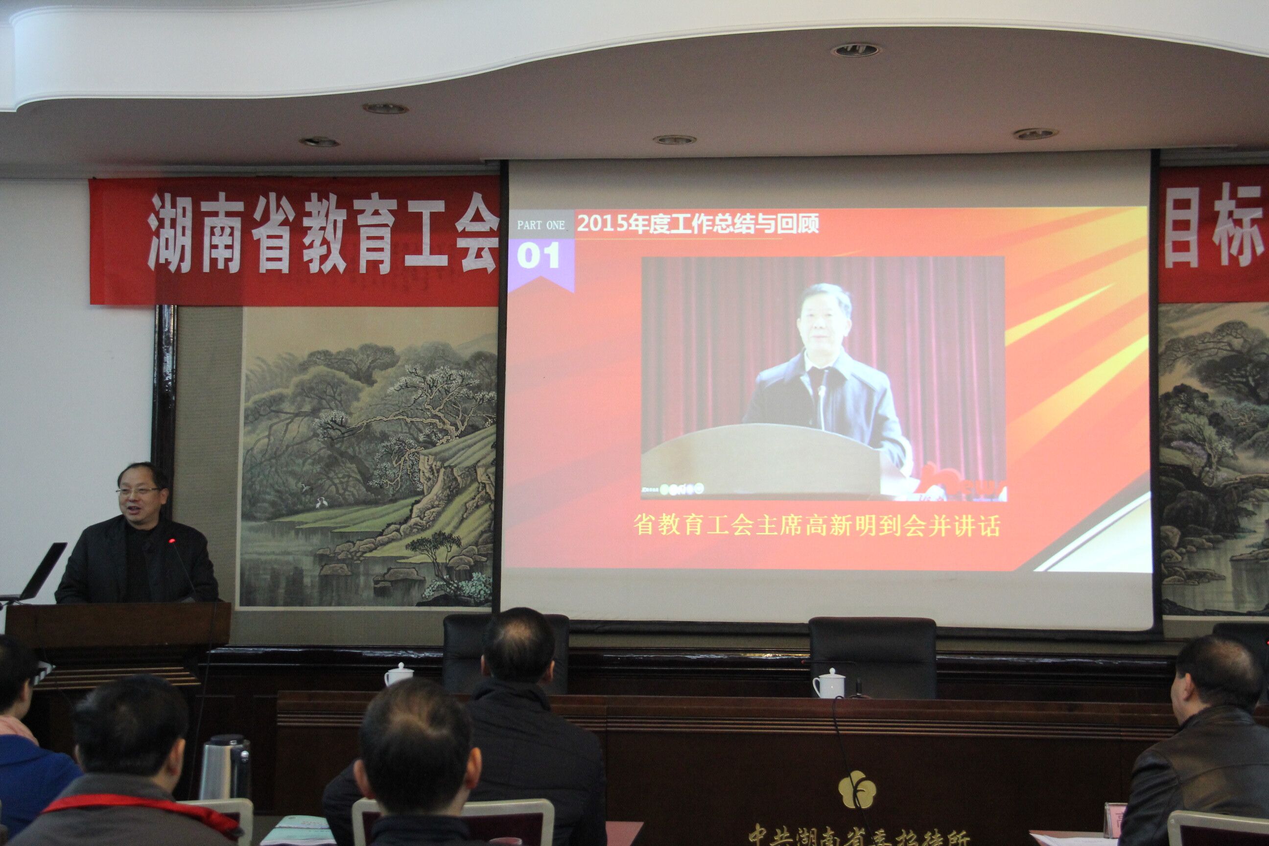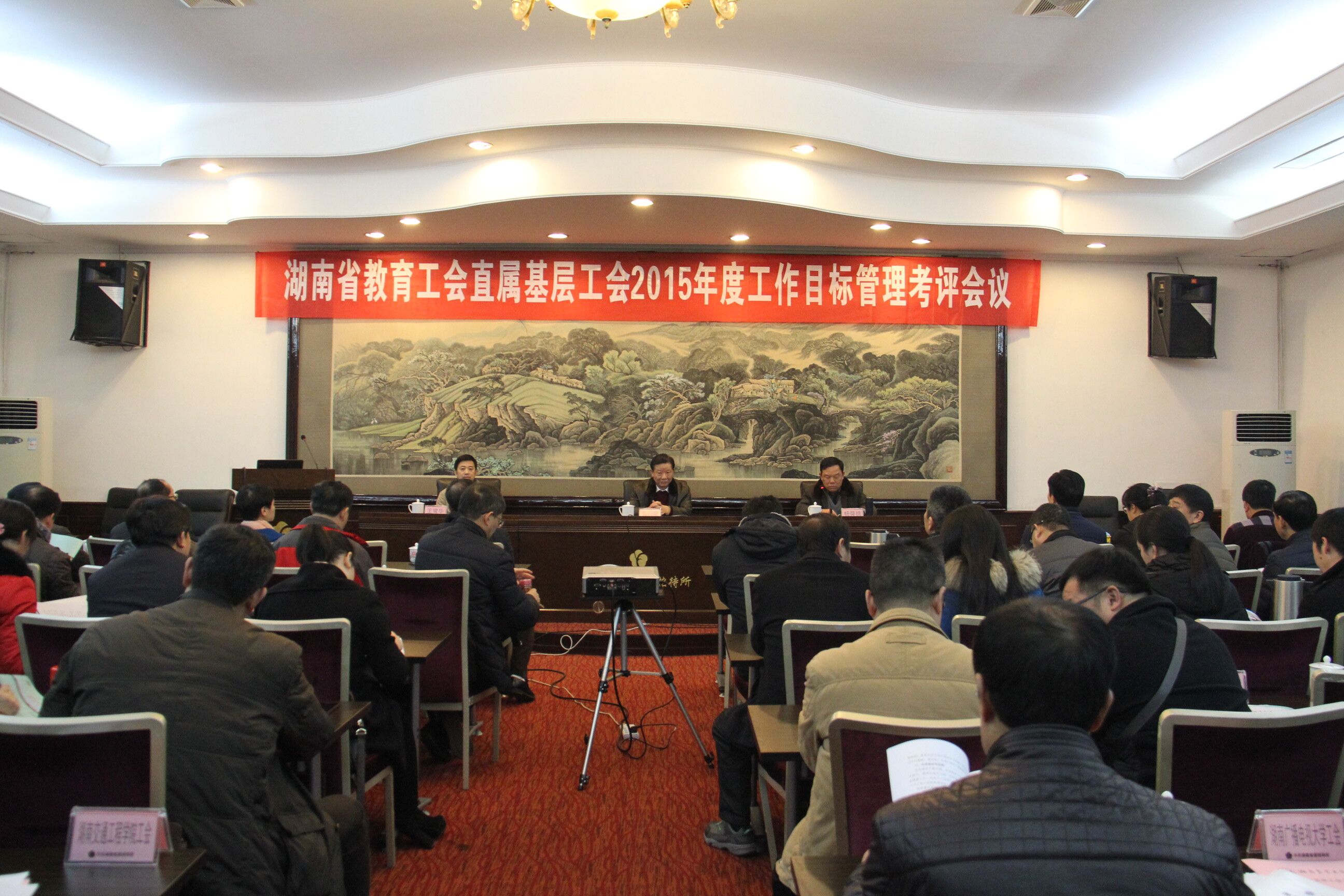 1月7号上午,湖南省教育工会直属基层工会2015年度工作目标管理考评会议在省委招待所会议中心举行,来自全省省属本科院校及附属医院共43家单位的工会负责人参加此次会议,WilliamHill体育工会常务副主席刘祎、副主席梁蓓蓓代表WilliamHill体育工会出席。