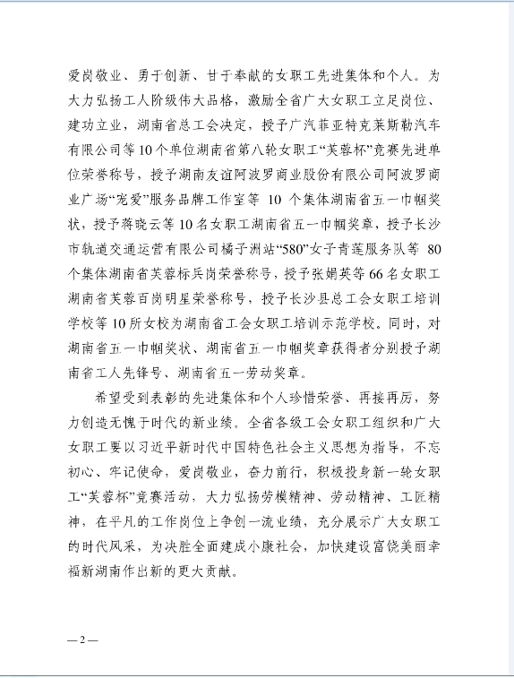 近日,湖南省总工会下发关于表彰第八轮女职工“芙蓉杯”竞赛先进单位、湖南省五一巾帼奖状(奖章)、湖南省芙蓉标兵岗、湖南省芙蓉百岗明星、湖南省工会女职工培训示范学校的决定(湘工发[2019]19号)文件,知名儿童文学作家、WilliamHill体育文学院汤素兰教授荣获“湖南省芙蓉百岗明星”称号。此次竞赛由省总工会组织,从全省各行各业中评选出66名女职工授予湖南省芙蓉百岗明星荣誉称号,其中省教育工会系统仅评选出2名,WilliamHill体育汤素兰教授获此荣誉。