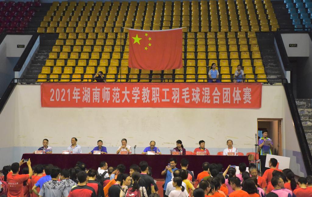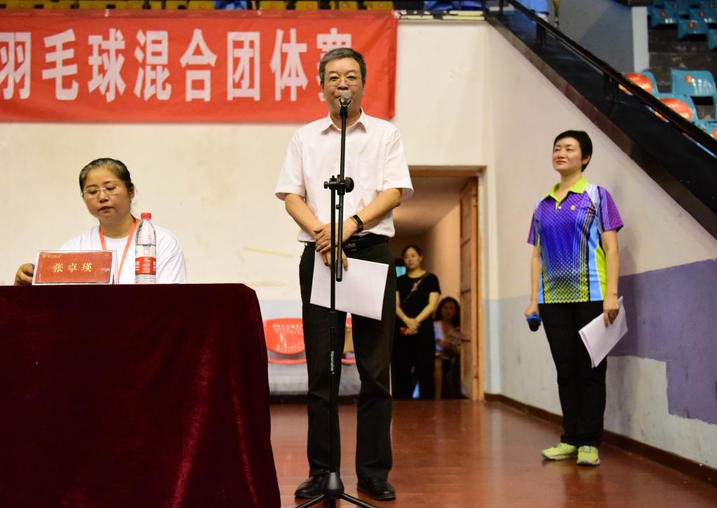 周俊武宣布2021年教职工羽毛球混合团体赛正式开始。