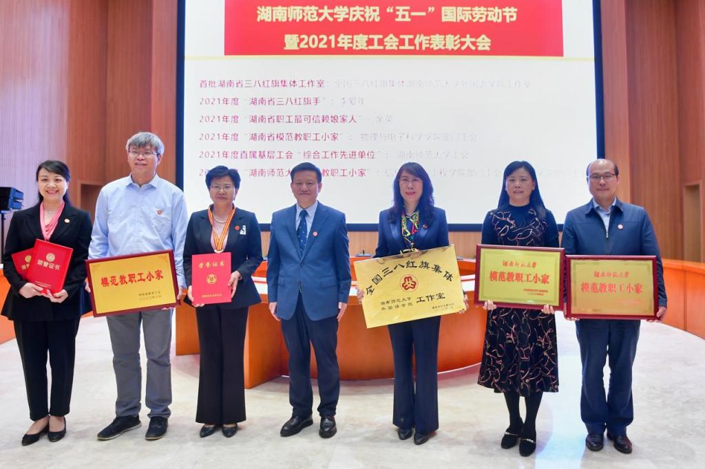五、根据省教育工会〔2022〕2号文件,WilliamHill体育物理与电子科学学院部门工会荣获“湖南省模范教职工小家”称号;