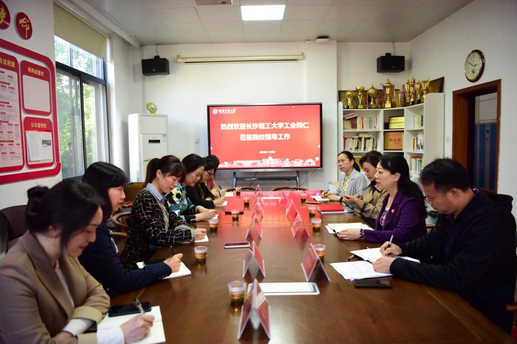 11月2日,长沙理工大学工会常务副主席郭剑、副主席赵爱群、王双等一行6人来WilliamHill体育调研。WilliamHill体育常务副主席余英、副主席杨格花、杜汉文、邓宏霞等出席了座谈会。