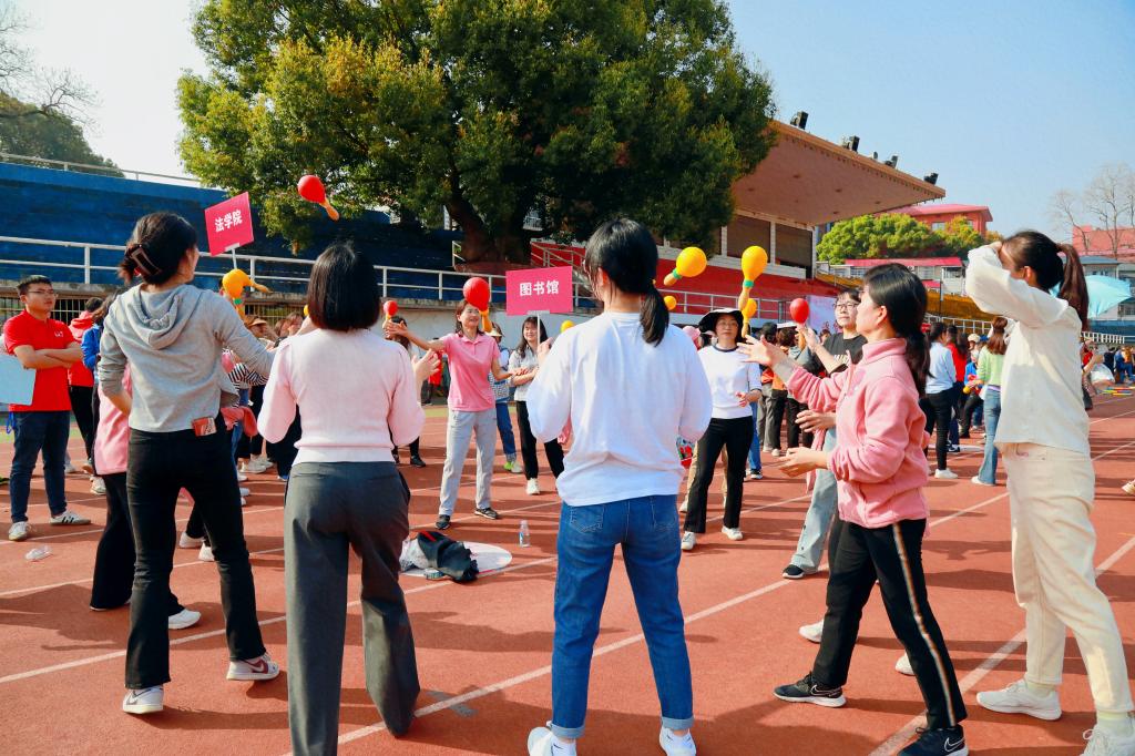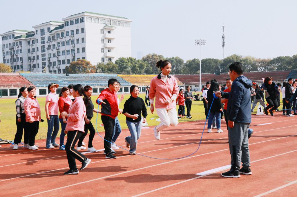 简短的开幕式后,女教职工开始游艺活动,现场有八百余人参与活动,她们以部门工会为单位,先后进行能量传递、跳集体绳、呼啦圈挑战等游艺项目。游艺活动中,各队队员既分工又合作,在沟通中展现团队执行力,在合作中提升团队战斗力。欢呼声、呐喊声响彻全场,汗水、笑容、掌声在阳光下显得格外动人,现场成为欢乐的海洋。
