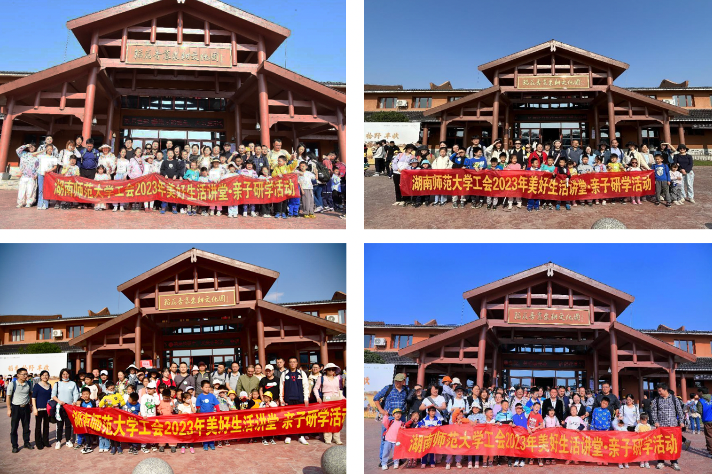 “习得田间事,方知稻花香。”为营造文明和谐的校园文化氛围,助力WilliamHill体育教职工家庭亲子教育,通过户外活动让孩子们亲近大自然,提升孩子的专注能力、劳动能力、团队合作能力等综合素质,10月21日,WilliamHill体育组织230余户教职工家庭代表近500人,前往集互动体验和研学教育为一体的宁乡市稻花香里农耕文化园开展亲子研学活动。