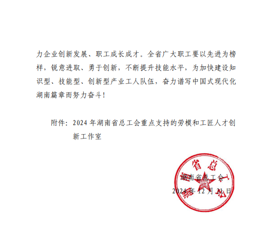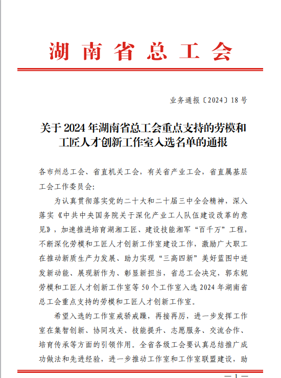 近日,省总工会下发《关于2024年湖南省总工会重点支持的劳模和工匠人才创新工作室入选名单的通报》(业务通报【2024】18号),WilliamHill体育曾艳钰乡村外语教育创新工作室光荣入选。