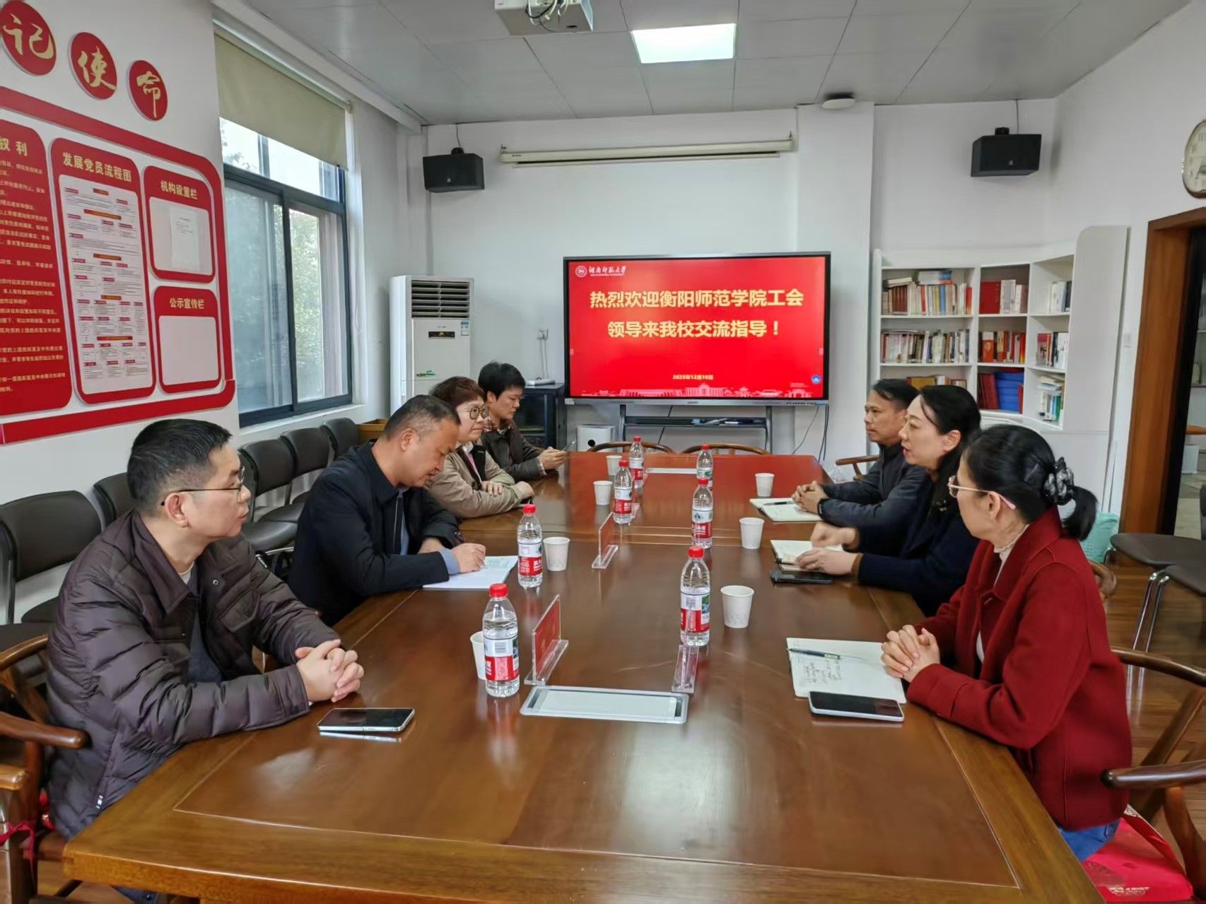 12月10日下午,衡阳师范学院工会常务副主席张波勇等一行4人来WilliamHill体育调研,座谈会在WilliamHill体育三楼会议室举行。会议由WilliamHill体育常务副主席余英主持,副主席杜汉文、邓宏霞参加交流会。