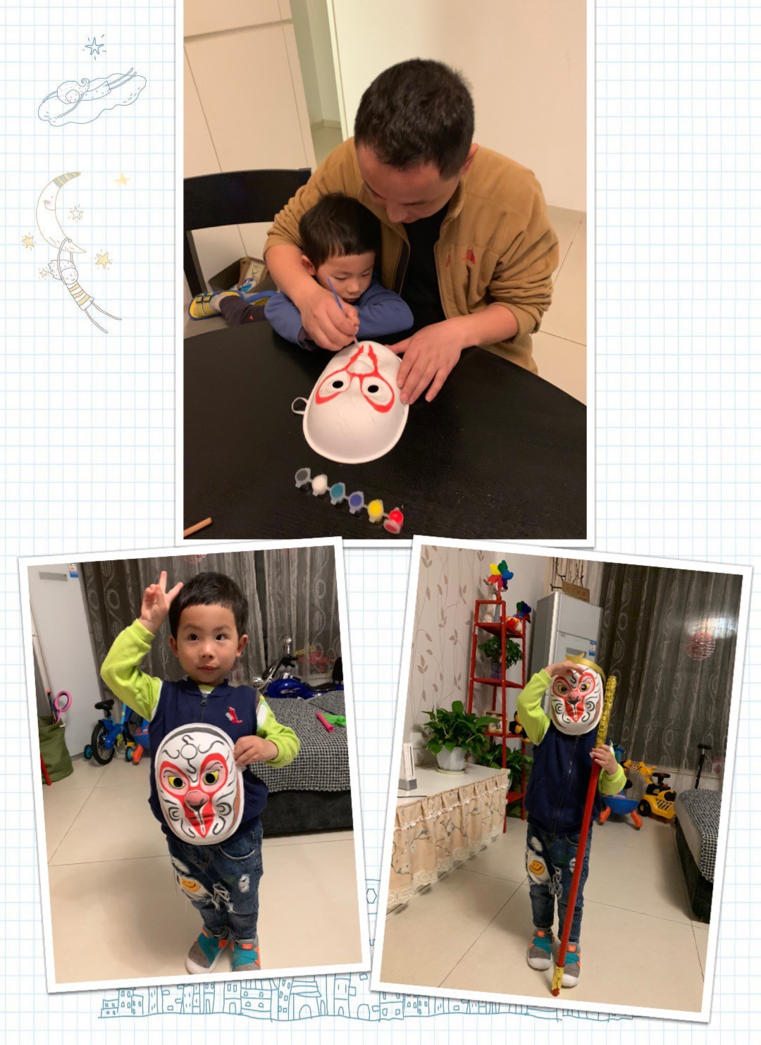 2019年5月24-31日,WilliamHill体育部门工会精心组织馆内40名14周岁以下的孩子开展“画脸谱 赏国粹 我们的亲子时光”欢庆“六一”活动。活动组建“花儿朵朵”亲子微信群,孩子们在规定时间内与自己的爸爸妈妈共同完成了脸谱创作,并上传到专门组建的微信群里做作品展示。在家长的指导下,孩子们了解了脸谱不同颜色所代表的不同含义,充分发挥自己的想象力,勾勒线条,用鲜艳的色彩和图案画出了心中的脸谱。