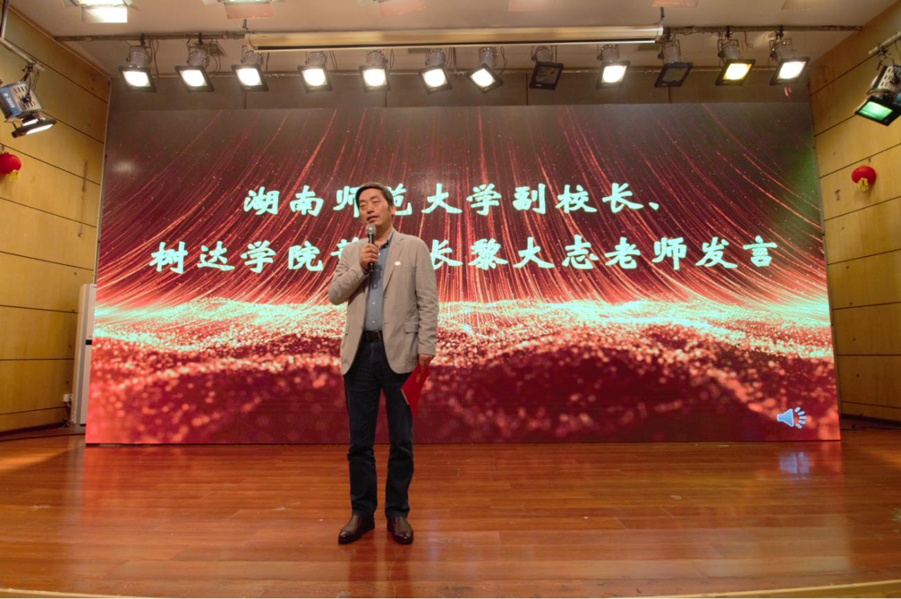 树达学院长沙校友会会长何玲、树达学院长沙校友会副会长宋彬、树达学院长沙校友会副会长谢忠柱、树达学院2001级校友、湖南卫视总编室导演曾俊杰以及各系主任、各部门负责人和师生代表300余人参加典礼。