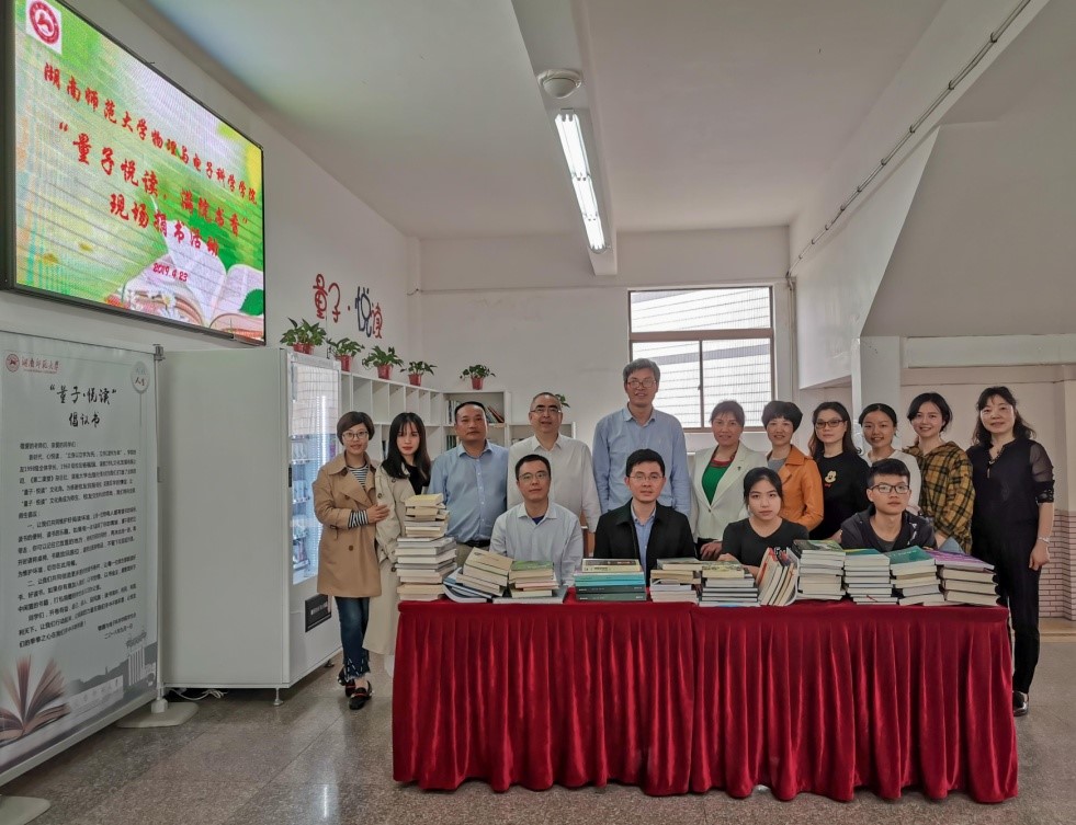 2019年4月23日下午,在第24个世界读书日来临之际,物电院在“量子悦读”功能区举行了“量子悦读,满院书香”教职工捐书仪式。本次活动由物电院工会主办,校科技处副处长邹永星、院党委书记康洪、院长唐东升、副书记谈方、副院长李友明、工会主席刘红荣出席捐书仪式。