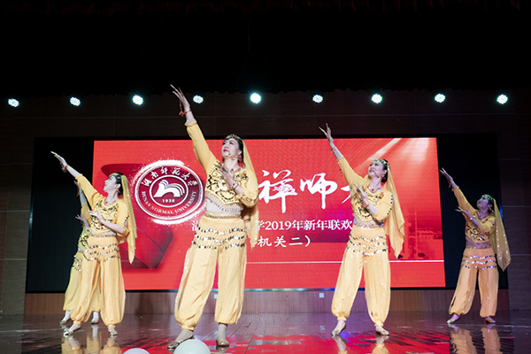联欢会在财务处带来的集体现代舞《财务阵线联盟》中拉开帷幕。各部门选送的节目各具特色,精彩纷呈。审计处带来的歌伴舞《唱支山歌给党听》,轻歌曼舞,扣人心弦;国际汉语文化学院带来的朗诵《每一个这样的你都是英雄》,以铿锵有力的语调诉说着跌宕起伏的2018年和继续坚定前行的2019年;国际交流处带来的粤语歌曲《喜欢你》,引人沉醉;档案馆带来的舞蹈串烧《我怎么这么好看》,青春洋溢,传递着自信与快乐;女声合唱《小精灵》,曲调欢快、青春有活力,眼前展示了一群爱与真实而努力着的小精灵们;印度舞《天竺少女》火辣热情,活力四射;诙谐有趣、创意满满的小人舞《恭喜发财》别开生面;幼儿园老师带来的街舞《舞无舞界》,激情四射、魅力无限;发展规划与学科建设处全员上阵,为大家献上了《游击队之歌》和《喀秋莎》。最后,联欢会在幼儿园的集体舞《60、70、80、90》中缓缓拉上帷幕。