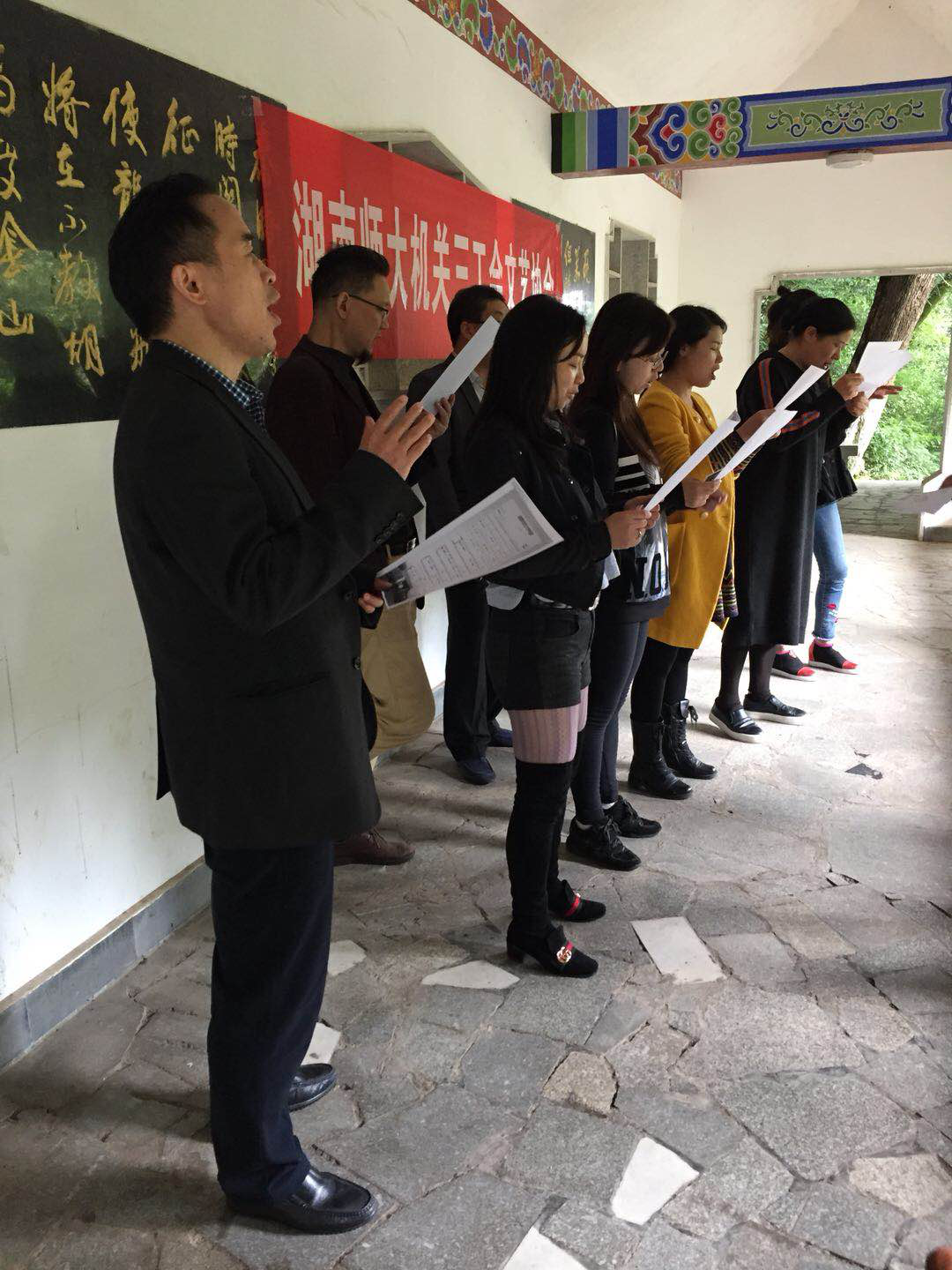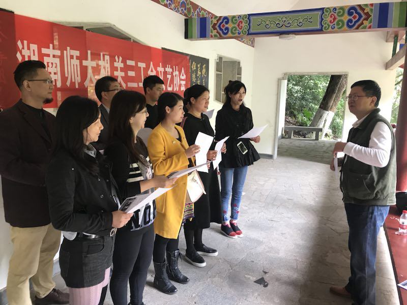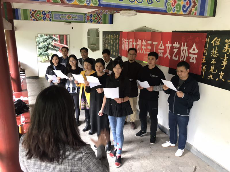 10月23日中午,为迎接80周年校庆,弘扬校园文化,营造热烈喜庆的节日氛围,机关三部门工会文艺协会在岳王亭景区艺术长廊组织会员开展“唱校歌、迎校庆”活动。活动由副会长、资产与实验室管理处何小芳组织。
