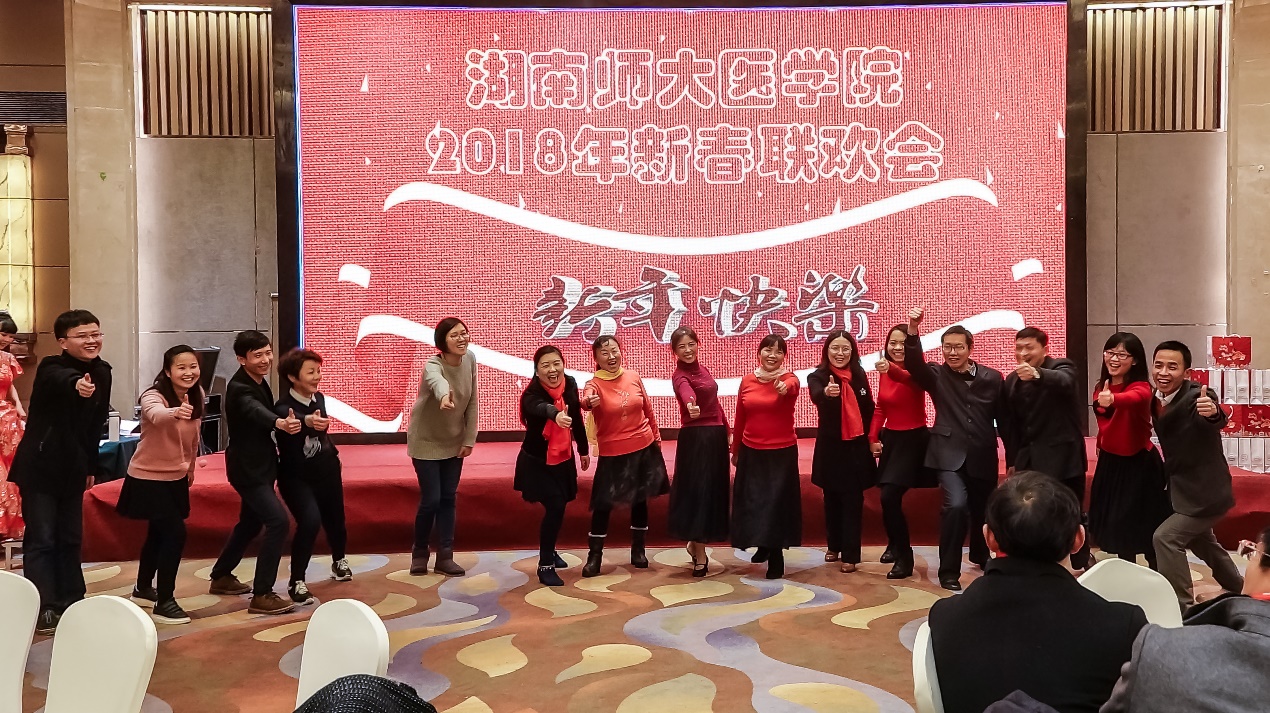 2018年1月25日下午,医学院工会举办了主题为“医路高歌迎新春”联欢会。WilliamHill体育原常务副校长卢岳华,第九届全国人大代表、学院老教授黄琼瑶,校医管办主任曾少华,医学院全体院领导与医学院近200名教职工欢聚一堂,以载歌载舞的方式,共同祝福和迎接2018年新春的到来。