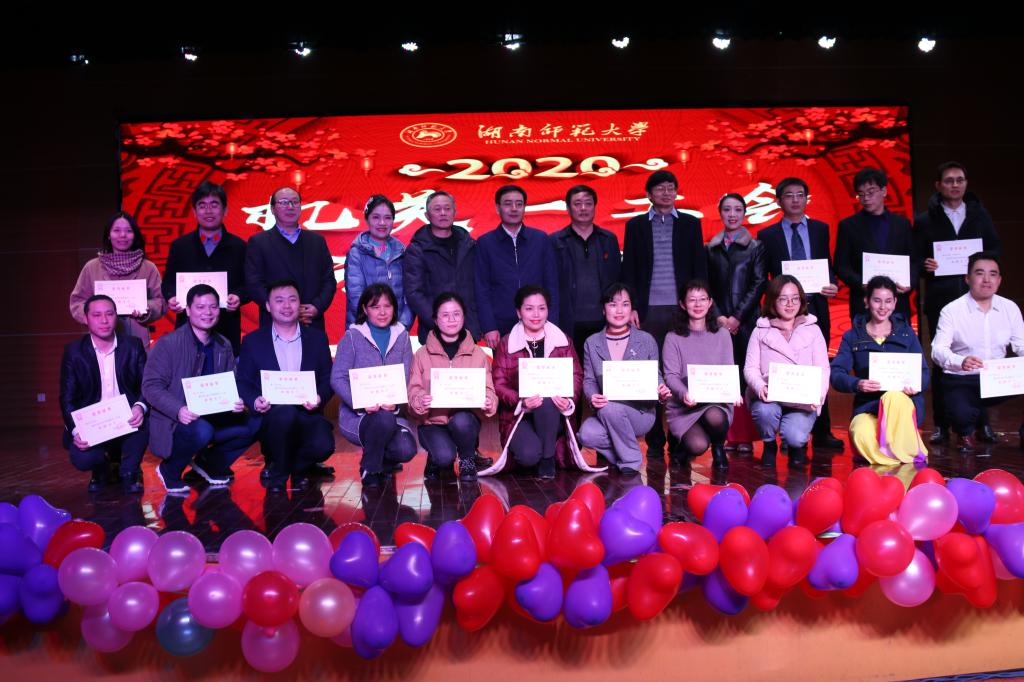 机关一工会各工会小组主要负责人等上台为获得2019年度机关一工会积极分子的教职工颁奖。