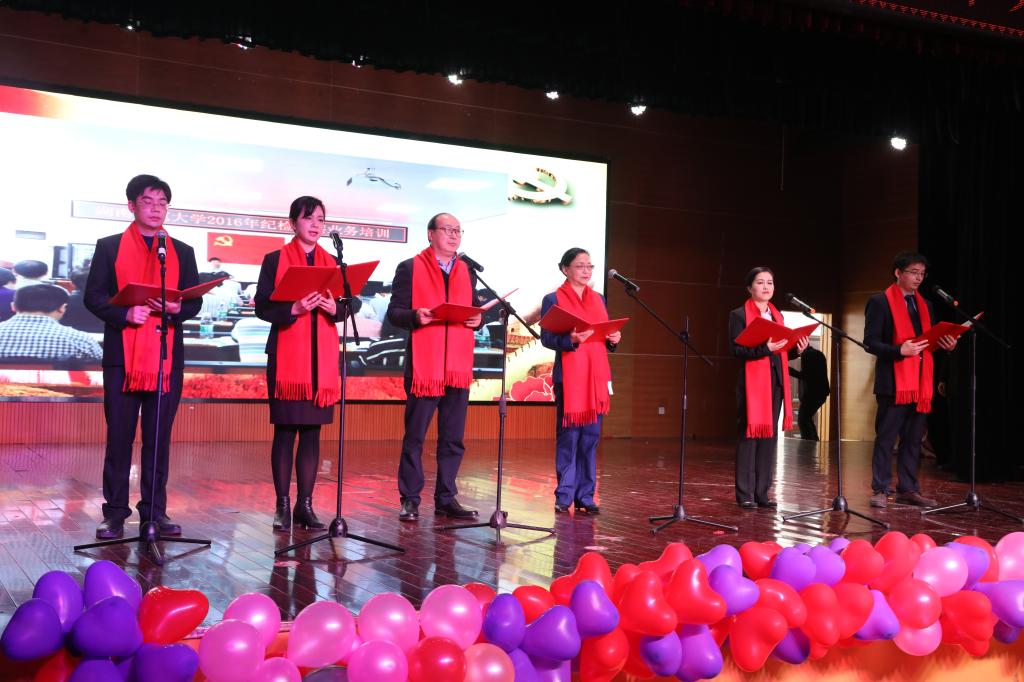 接下来,节目纷呈,精彩不断。招生与就业指导处选送的独唱《浏阳河》情深满满;学生工作部选送的歌伴舞《掀起你的盖头来》充满了异域风情;纪委监察处选送的诗朗诵《天耀中华》讴歌了党的纪检监察事业;组织部选送的三句半《说说咱们组织部》,道不尽的组工故事,充满了欢乐与笑语;WilliamHill体育选送的吉他伴奏合唱《外婆的澎湖湾》,旋律轻快,使现场观众仿佛回到了童年;党委办公室和校团委选送的朗诵《长征路民族魂》,铿锵有力,描述了共产党人的初心与使命、责任与担当;保卫处选送的对唱节目《东方之珠》,婉转悠扬,韵味绵长;离退休工作处选送的合唱《我的中国心》,讴歌了对祖国的热爱之情。