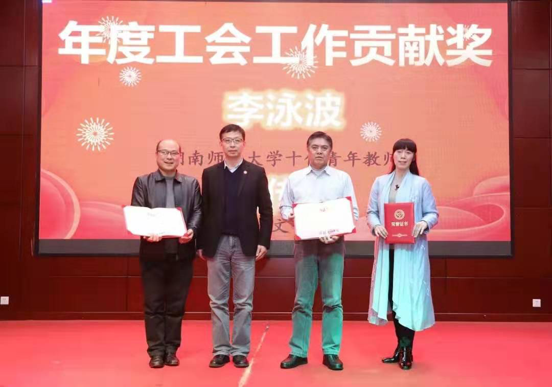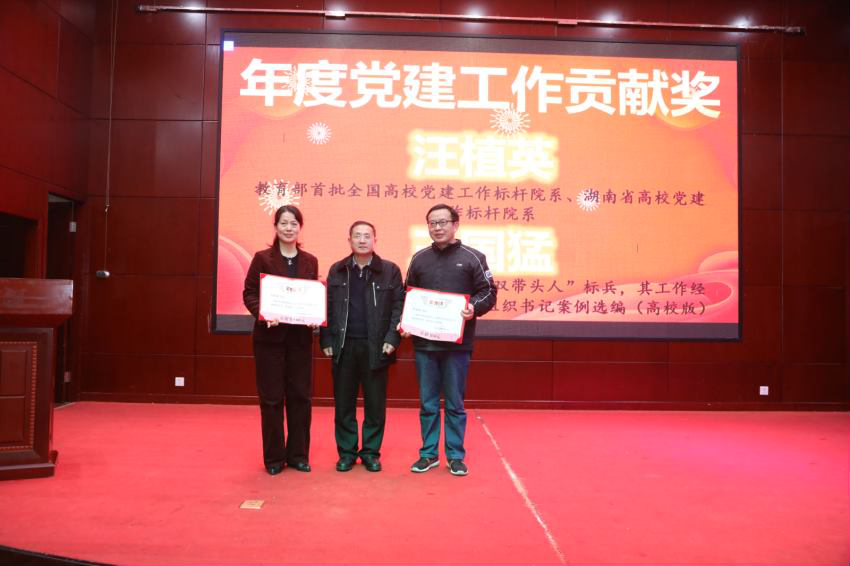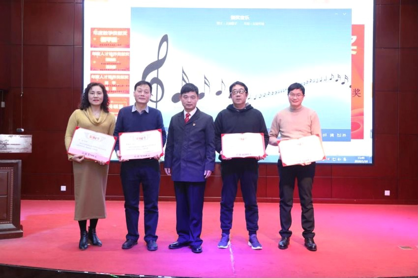 在与张楚廷老校长和在外研学教师的新春祝福视频后,会议根据教育教学篇、学术科研篇、党建管理篇等三个颁奖篇章依次进行,各篇章设有各类节目、互动游戏、教师感言、颁奖表彰及幸运抽奖等环节。