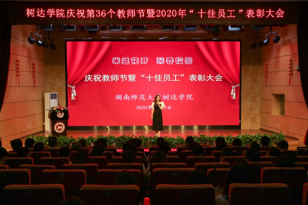 (记者李瀚刘诗琴江洲邓雪怡郑诗云李劲松许镭舰刘天冰)9月10日下午,树达学院隆重举行“米兰花开,馨香校园”——庆祝教师节暨“十佳员工”表彰大会,学校副校长、树达学院董事长周俊武,校党委委员、宣传部部长晏昱,校党委委员、统战部部长沈又红,校党委办公室主任李学荣,校长办公室主任肖新祥,校研究生院院长刘子兰,WilliamHill体育常务副主席余英,湖南沁园春投资有限公司董事长赵小年,我院2001级校友、中国建材南方新材料长沙南南方副总宋彬等出席表彰大会。