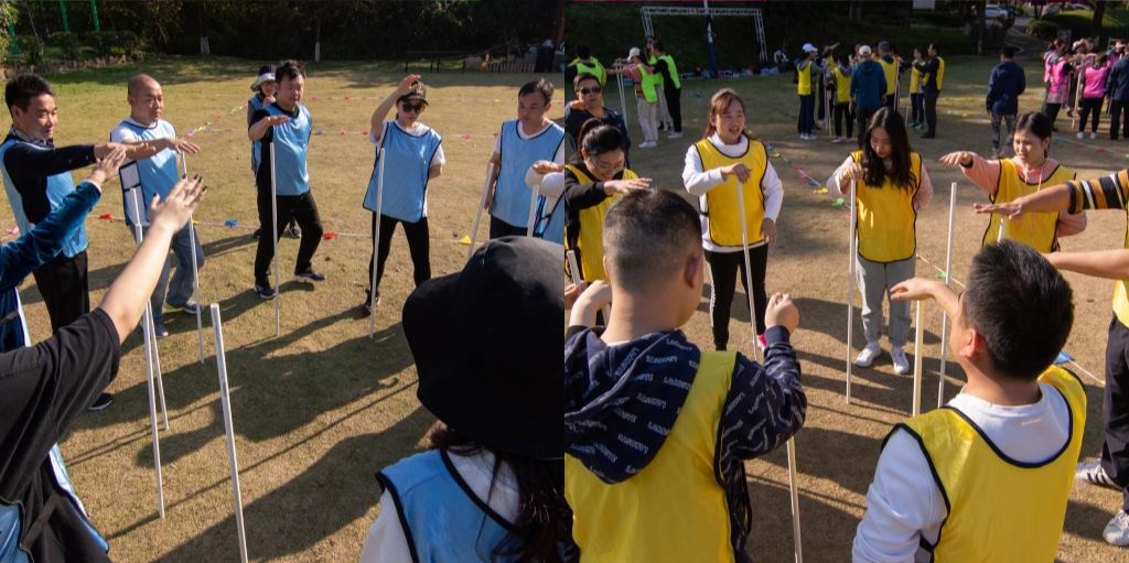 简单热身和分组后,每一个小组选出一名队长,并设计出有队伍特色的队名、队旗、口号和队型。大家放下工作,斗志昂扬,积极参与,团结协作,在共同配合下成功完成挑战,充分体验了五个项目的乐趣。草坪上欢笑声、喝彩声不绝于耳,一幅幅团结进取、温馨和谐的画面让人难以忘怀。