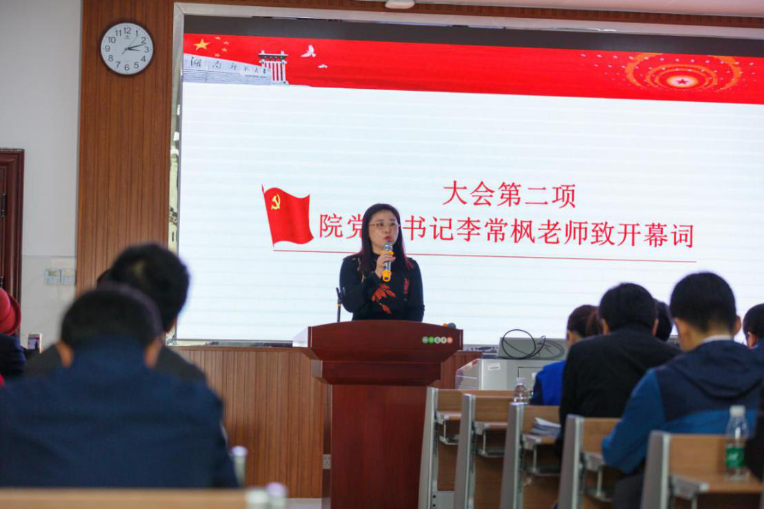 在雄壮的国歌声中,大会正式开始。首先由院党委书记李常枫老师发言,李书记对与会代表以及各位来宾对本次会议的支持表示了感谢,并介绍了本年度学院的主要工作及成果,对学院的院务公开工作作了详细的说明。