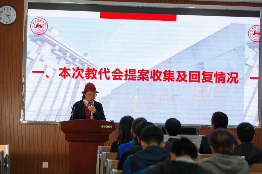 工会主席付玉作了工会工作报告。她首先对本次教代会提案收集以及回复情况进行了介绍,向大会汇报了院工会一年来的各项工作,以及各项工作所取得的成绩、成效,同时对来年的工作进行了展望,在原有工作的基础上创造性地开展工作,并在建设教职工之家方面有所成效。