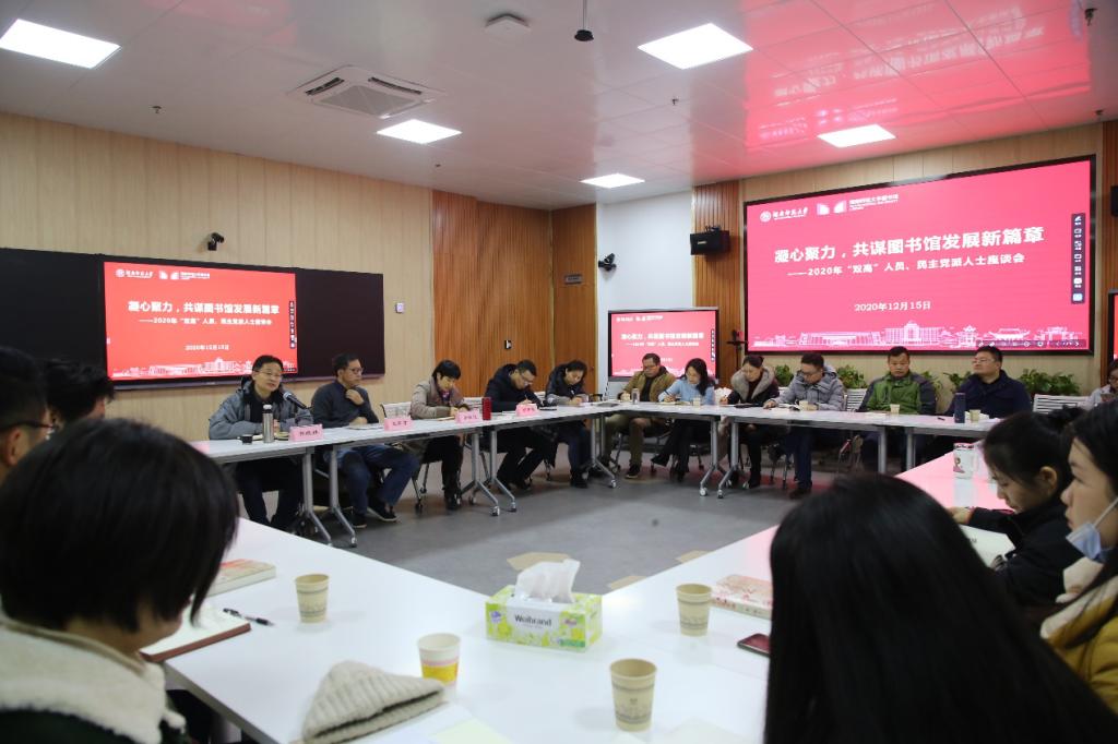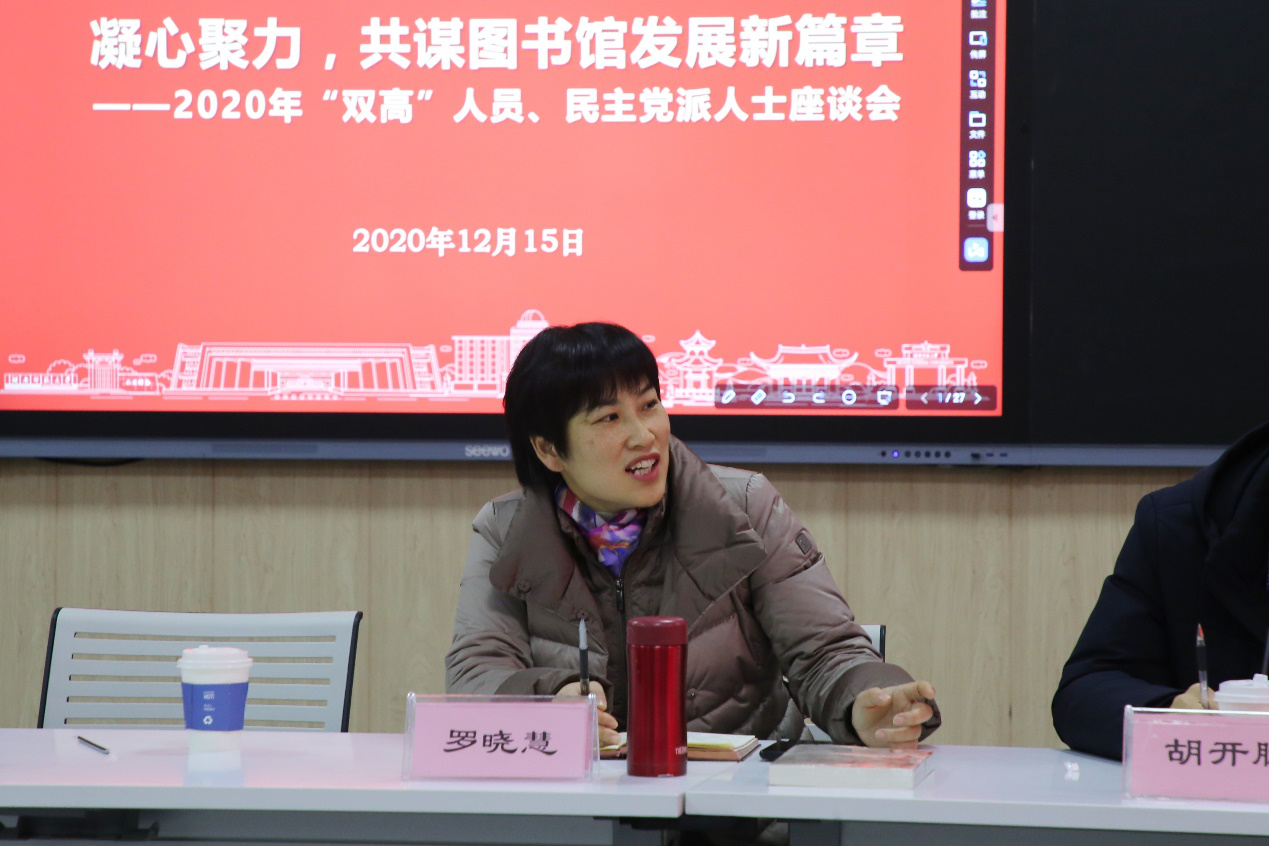 12月15日下午,WilliamHill体育召开以“凝心聚力,共谋WilliamHill体育发展新篇章”为主题的“双高”人员(副高及以上职称、硕士及以上学历)、民主党派人士座谈会,会议由副馆长龚晓林主持。