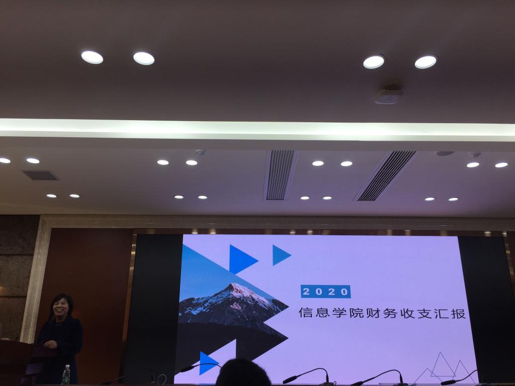 工会的讲座结束后,年终工作总结大会正式召开,首先,由院长代建华教授做2020年度的年终工作汇报。代院长首先对学院2020年的工作进行了总结,分别从本科教学工作、科研与学科建设工作、研究生工作、师资建设以及行政等多个方面,对学院在过去的一年所完成的工作进行了回顾,对为学院做出重要贡献以及获得科研与教学成果的多位教职员工表示感谢和祝贺,最后对2021年的工作提出了重要规划。接下来,周劲松副书记对我院新实施的本科生学业导师制情况进行了总结,充分肯定了本科生导师制的做法及其阶段性成果,同时对下学期的工作提出了期望和建议。最后,行政副院长余小莉老师就学院一年来财务收支情况进行了总结汇报。至此,本次大会圆满完成。