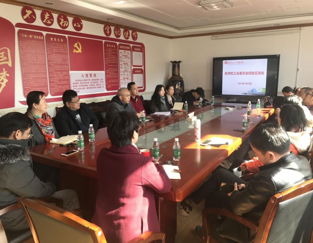 1月19日上午,医学院在办公楼4楼会议室举行新老工会委员交流会。第四届和第五届工会委员会全体委员参加会议,医学院院长何祖平、党委书记鄢朝晖、党委副书记陈松、副院长邓文艳出席会议,工会主席袁仕善主持交流会。