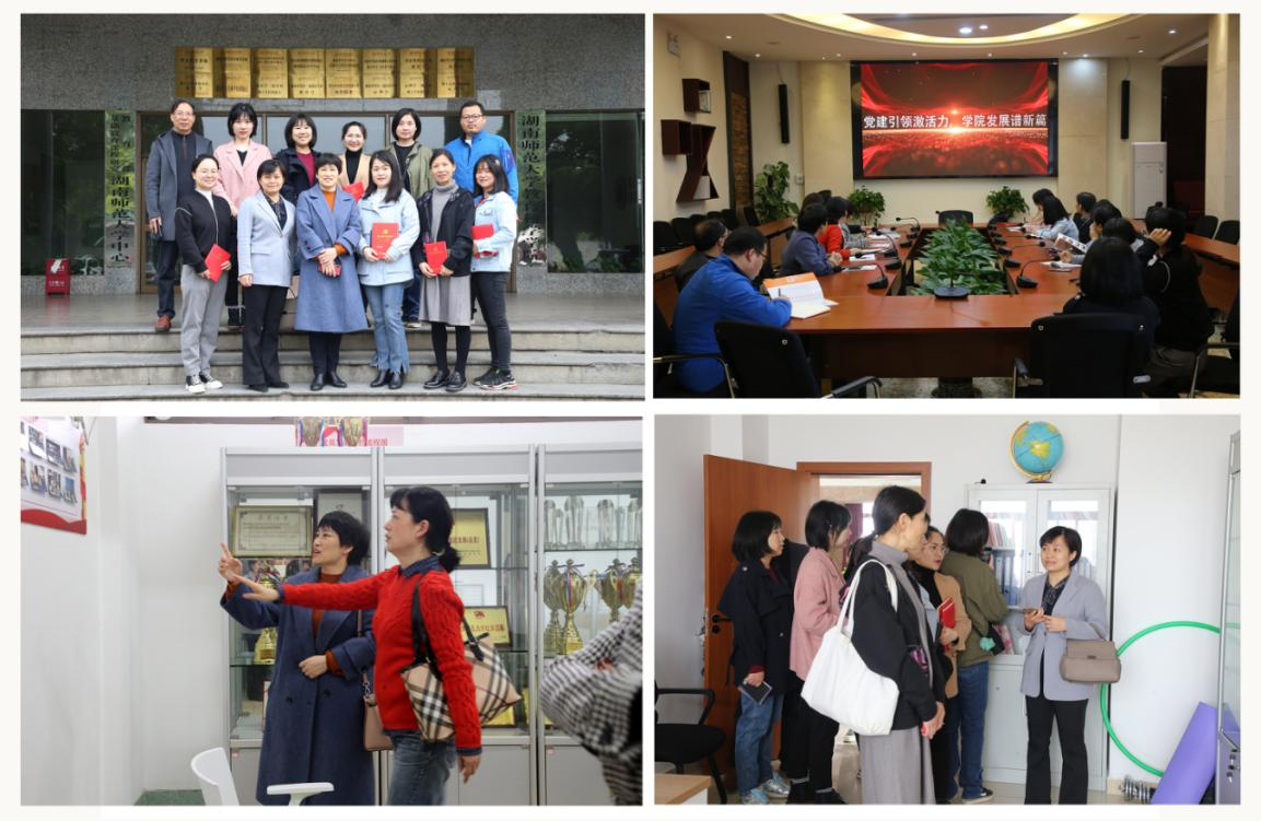 交流会后,汪植英带领大家参观了学院的“共产党员之家”、“学生党建服务中心”、工会办公室、工会活动室 、教授研究室、阳光书屋及交流空间、形体训练室、音乐琴房、学院资料室等场所。