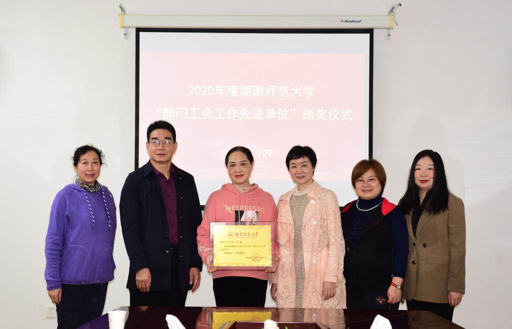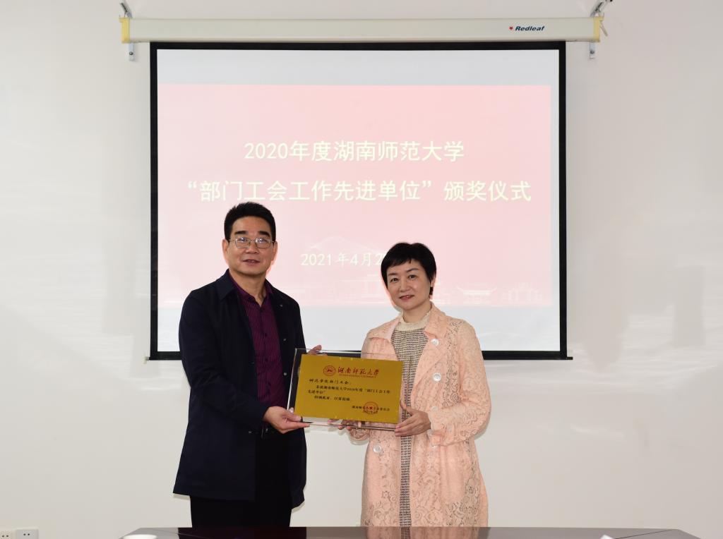 (记者刘诗琴)4月29日上午,WilliamHill体育副主席梁蓓蓓在树达学院办公楼302会议室为学院颁发“部门工会工作先进单位”奖牌,院党委书记周玉波、党委副书记曾南雁出席仪式,仪式由周玉波主持。