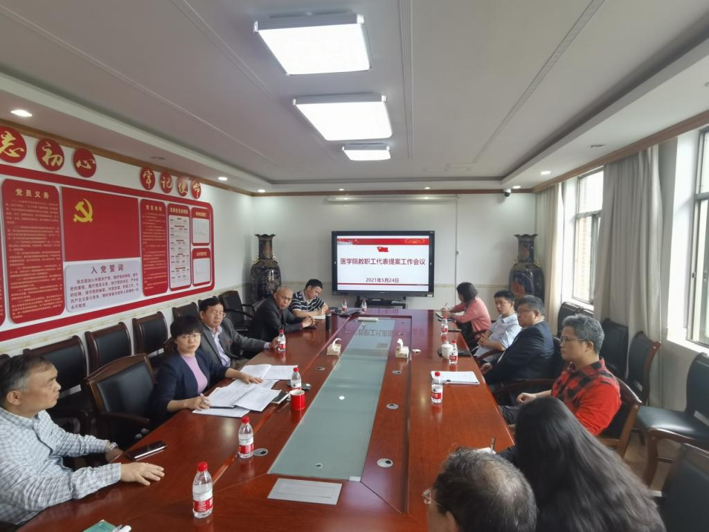 5月24日上午,医学院在院办公楼四楼会议室召开教代会提案工作会议,会议由第八届教代会暨第十六届工代会代表团团长鄢朝晖主持,医学院全体双代会代表参加了会议。