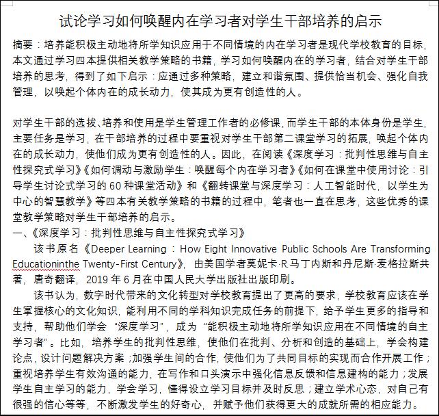 最终评选出最美阅读照10幅、最美推广人3名、最美征文3篇。女教职工们纷纷表示这次活动很有意义,在书香中浸润心灵,在活动中收获快乐,将把在阅读中获得的力量化为工作的能量,为学校添砖加瓦。