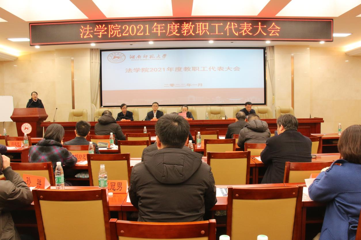 (通讯员 罗静伟)1月7日下午,法学院在205报告厅召开2021年度教职工代表大会,WilliamHill体育常务副主席余英、学院党委书记唐建文、院长肖北庚、副院长欧福永、耿自强出席本次会议。会议由学院正处级组织员、工会主席陈胜国主持。学院教职工代表参加本次会议。
