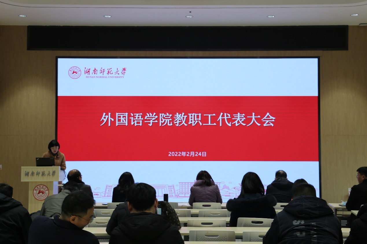 (通讯员 严茳葶 童雨莎)2月24日下午,外国语学院于腾龙楼613多功能报告厅召开2022年新学期工作会议暨教职工代表大会。院长曾艳钰作新学期工作报告,全体院领导出席会议。会议由院党委书记李泳波主持。