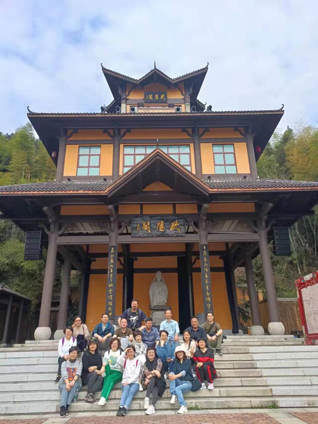 接下来,团队瞻仰了立有欧阳询塑像的欧阳阁,参观了介绍其生平的欧阳询纪念馆,了解了欧阳询家族坎坷的历史和欧阳询毕生对书法艺术孜孜不倦的追求,其对书法事业的热爱和努力让所有的老师也感慨良多。