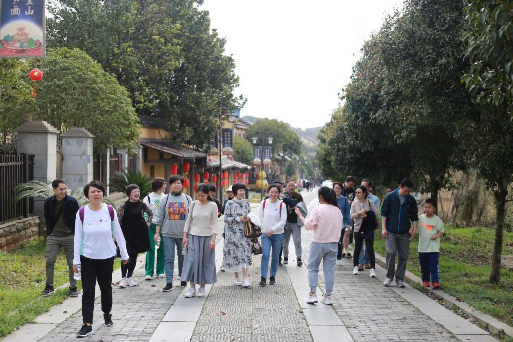 踏青团队上午十点左右抵达目的地,在徐徐春风里,一行人首先游览了书堂山国学小镇。沿着铺着青砖和麻石的宽敞街道,两旁是仿唐风格的建筑,各类充满文化气息的文创小店,随处可见的书法、雕塑、剪纸作品,让老师们仿佛回到了盛唐时代。