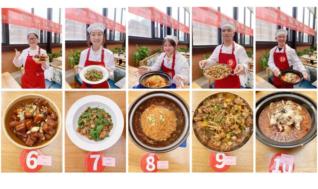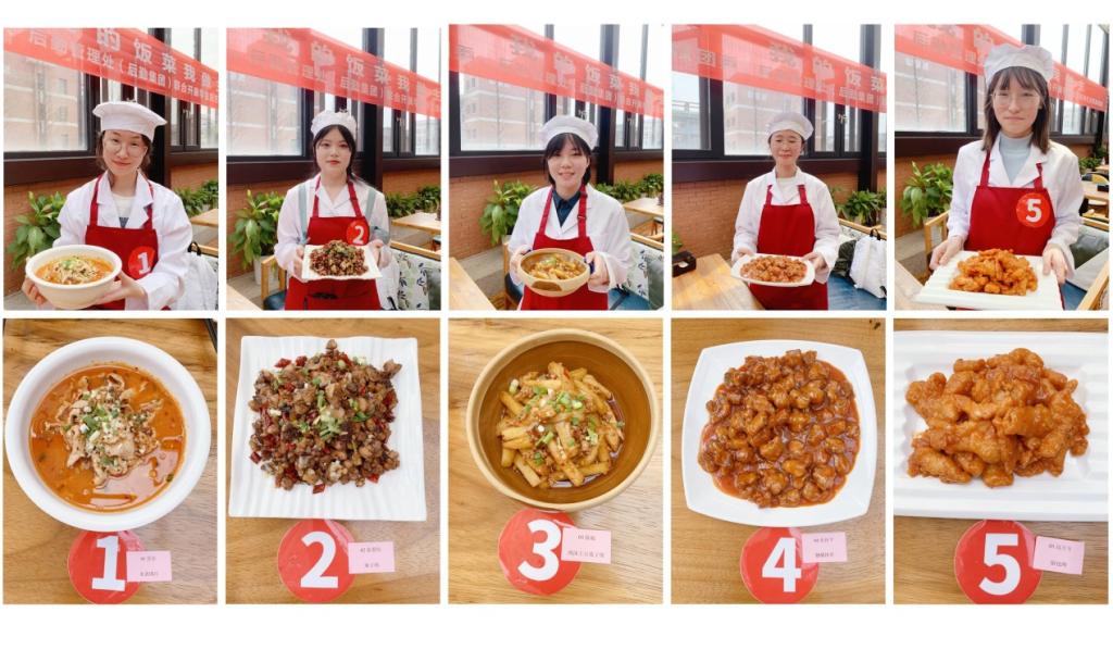 培训之前,餐饮服务中心根据同学们烹饪基础较弱的特点,针对大家选定的菜品,从食材准备、制作指导等方面制定了操作性强的培训方案。操作现场,胡主厨首先向大家介绍了新疆大盘鸡、红烧肉、糖醋排骨、锅包肉等几道家常菜的主料、配料和制作步骤,对制作过程中需要注意的事项一一说明。随后,胡主厨依次从调料的类别、清洗切配、刀工火候、上色调味、成型标准等操作步骤,对参加培训的同学们一对一进行了指导,每一道工序都一丝不苟。现场气氛热烈,同学们热情高涨,边聆听边操作,不论焯水、过油、爆炒、慢炖,都按照程序用心制作每一道菜,火候掌握得也十分到位。随着一道道色香味俱佳的菜品出锅,评委们认真给每位选手的菜品进行了打分,逐一点评,最终评选出一等奖二名、二等奖三名、三等奖五名,并为每位同学颁发了证书和纪念品。