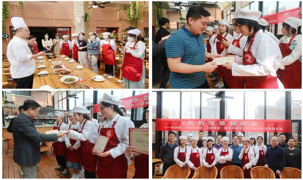 (通讯员 邹灿 李洋)为深入贯彻落实党史学习教育精神,践行为师生服务的初心使命,推进学生劳动实践教育深入开展,培养学生的劳动技能,提高劳动意识,养成勤俭节约习惯。3月13日上午,后勤管理处(后勤集团)、校团委联合开展了以“我的饭菜我做主”为主题的学生厨艺培训实践活动。后勤管理处(后勤集团)处长黄智勇、党委书记陈文雄,校团委书记陈天嵩,餐饮服务中心主任刘涛、副主任胡建球及徐卓、行政总厨胡涛及参加培训的10名同学参与了此次活动。活动由校学生会权益部部长李彤主持。